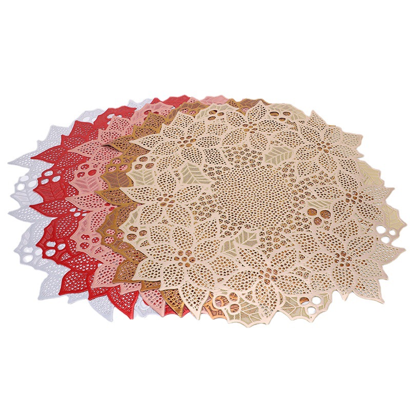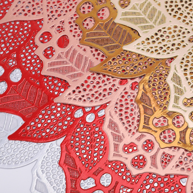 flower embroidery pvc hollow gilding table mat tea cup vase mat insulation tea table decorative mat