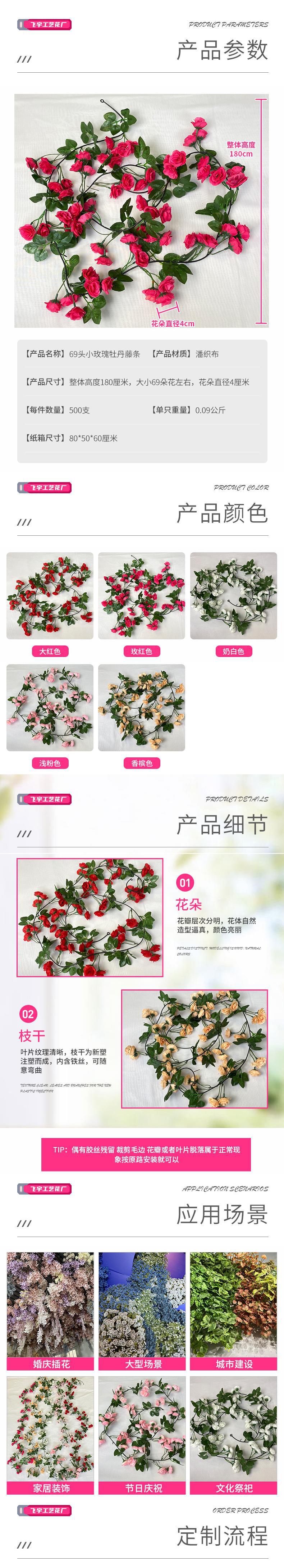 Pan Woven Cloth 69 Small Rose Peony Rattan Wedding Wedding Celebration Decoration Arch Decorative Flower Vine Flower Wall Set Fake Flower