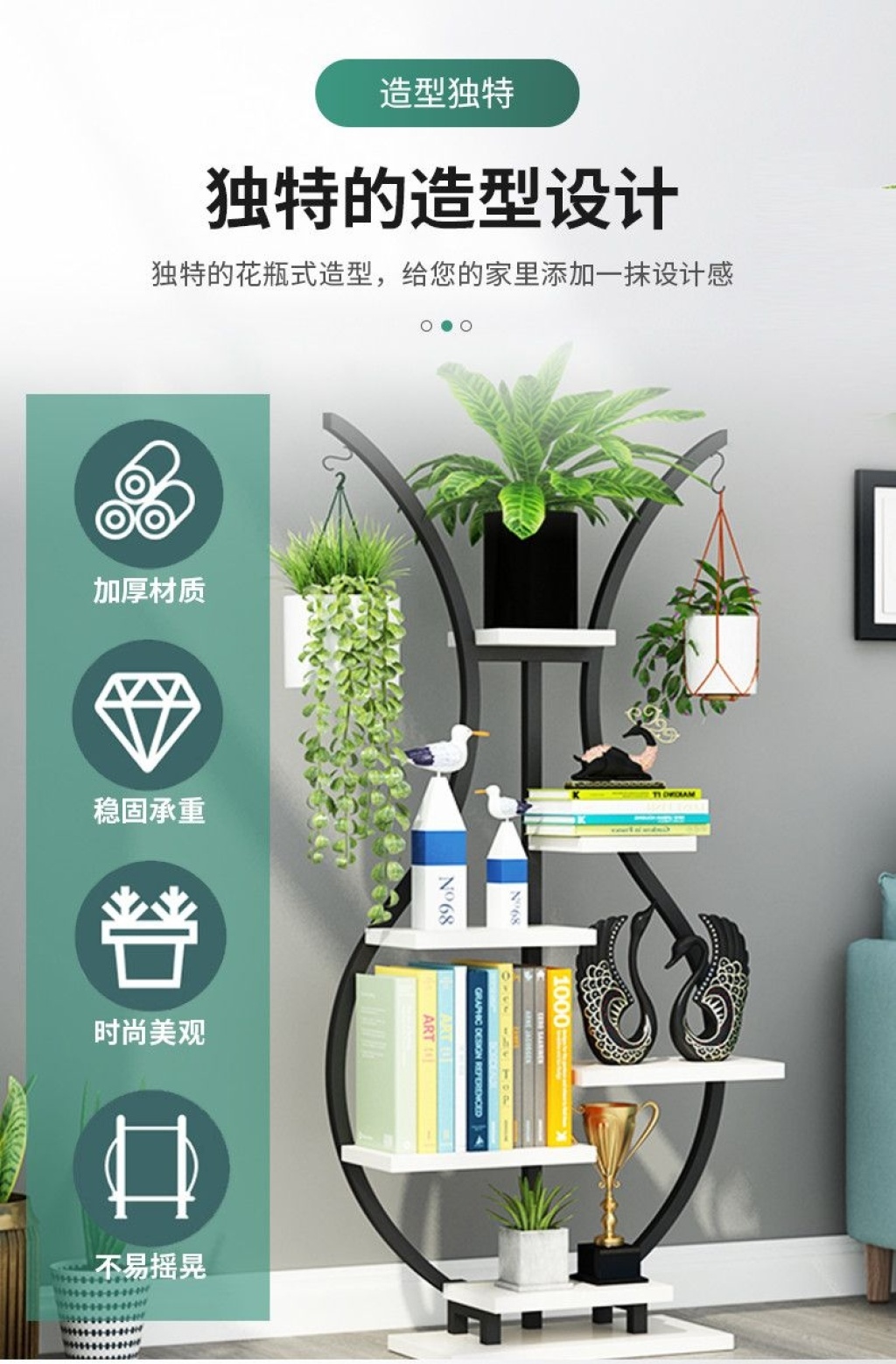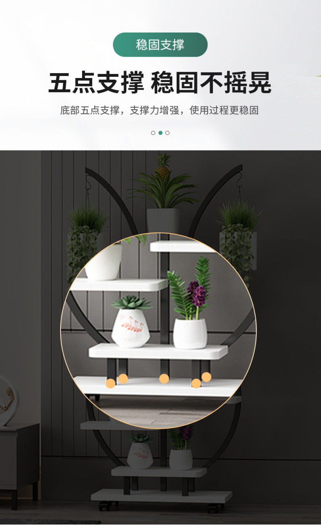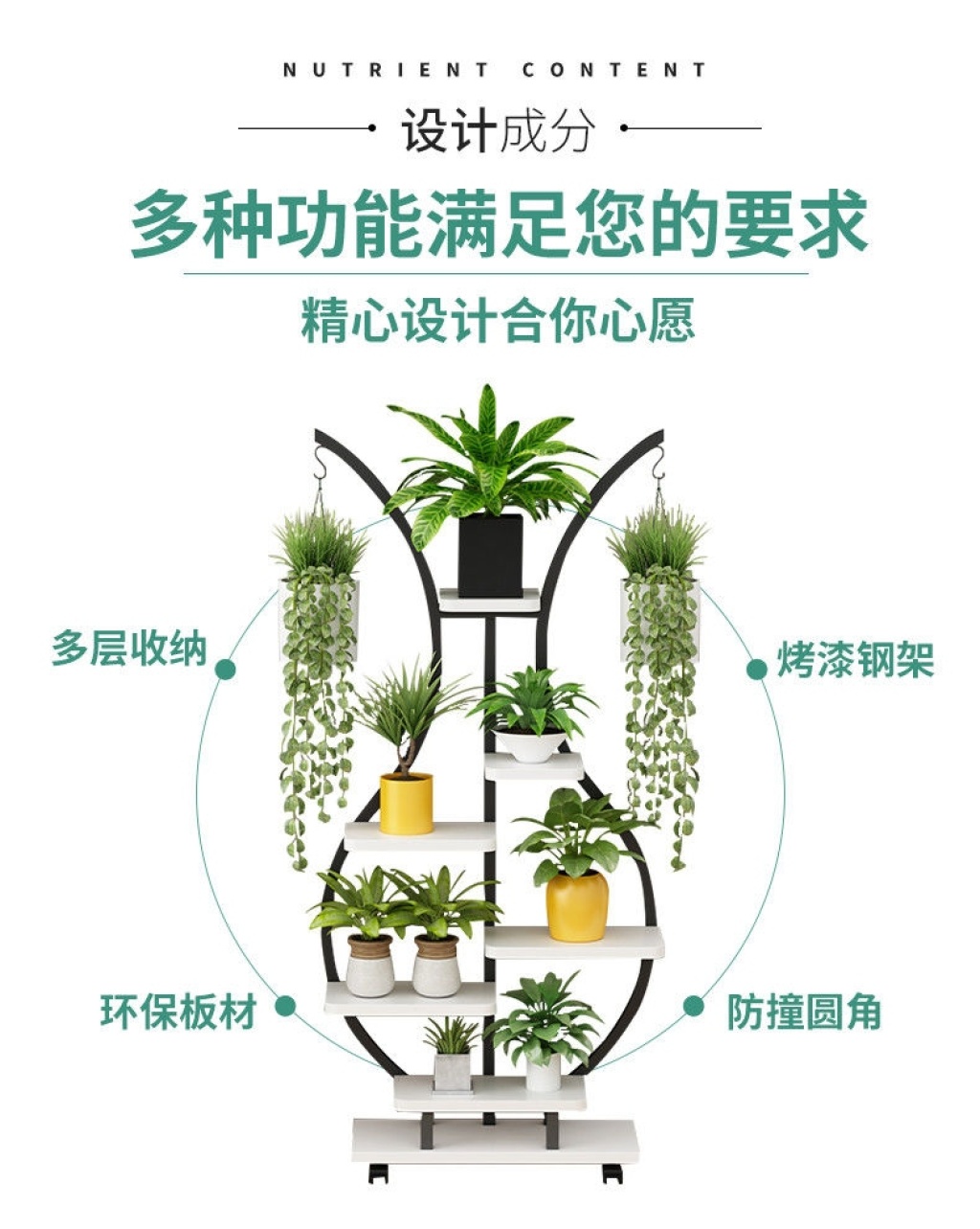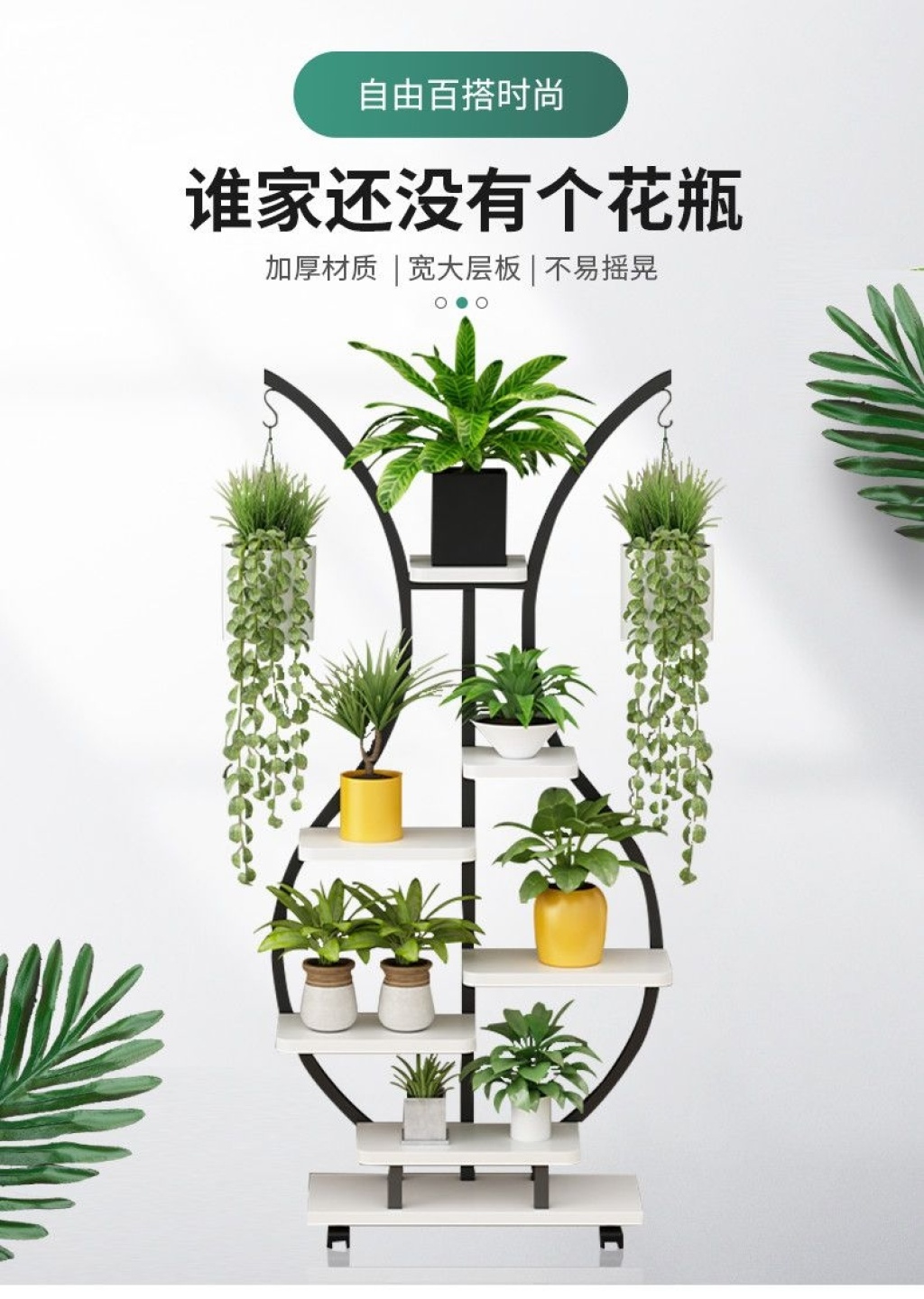 Balcony Flower Stand Floor-Standing Storage Rack Indoor Living Room Multi-Layer Succulent Iron Flower Rack Flower Pot Rack with Wheels