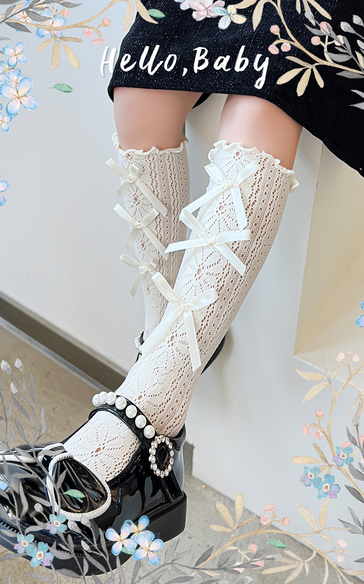 Kid's Socks Women's Lace Small Flower Bow JK Lolita Thin Princess Socks Long Tube Baby's Socks Factory Wholesale