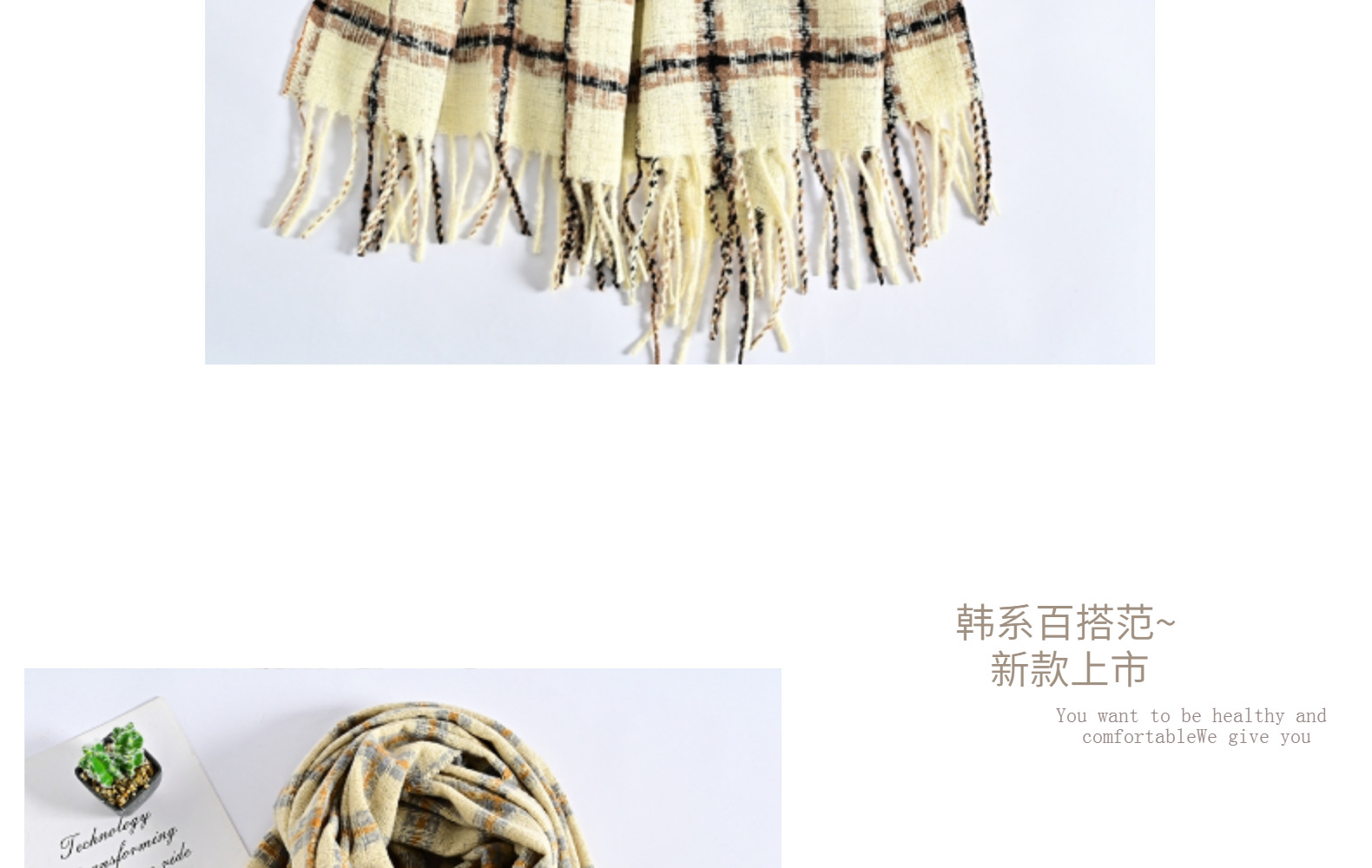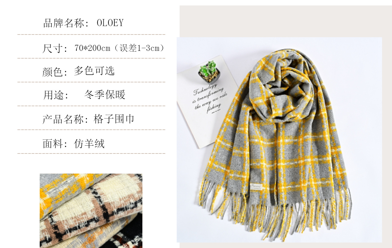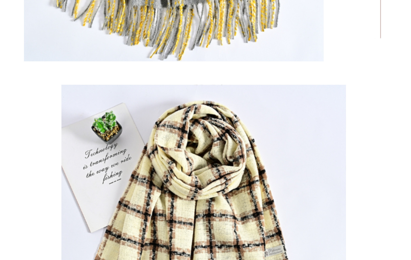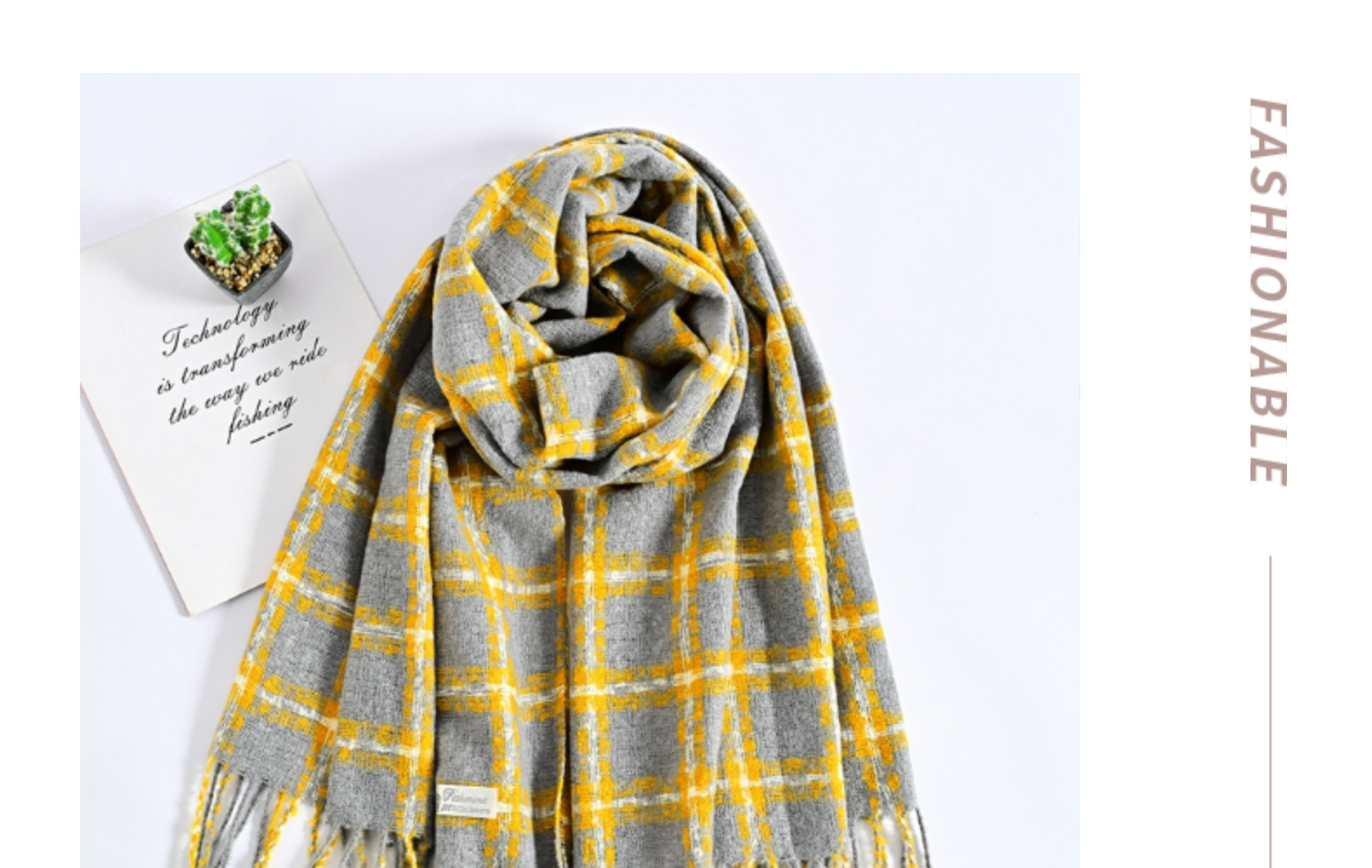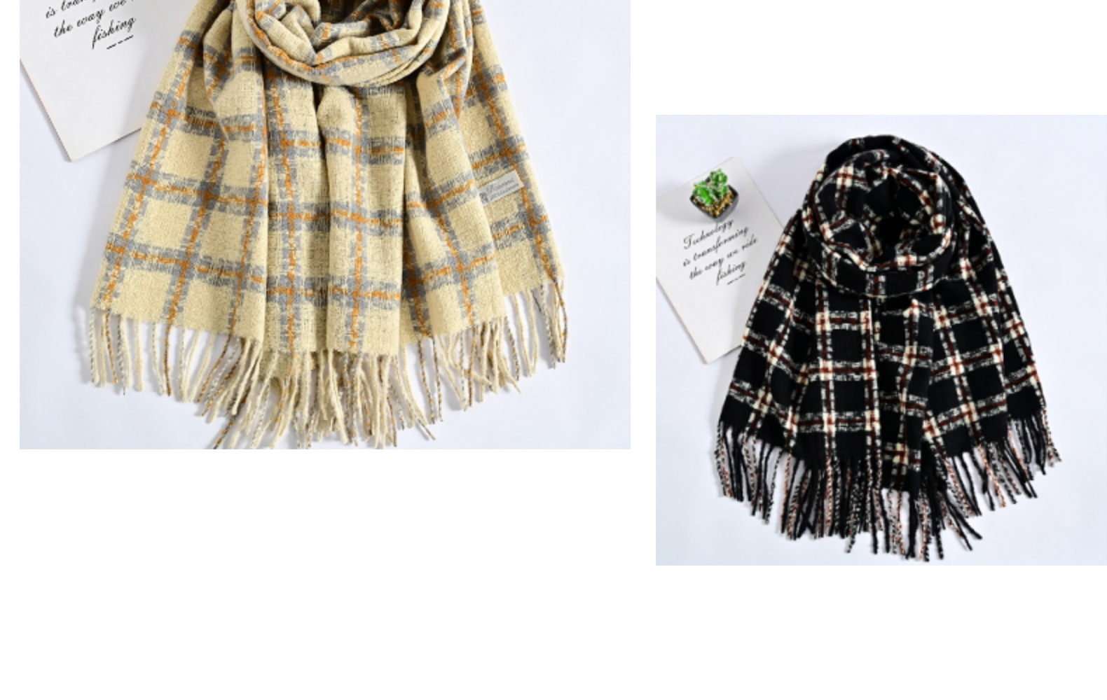 Winter New Artificial Cashmere Scarf Women's Pop Plaid Scarf Long Beard Korean Style Fashionable Warm Scarf Shawl Wholesale