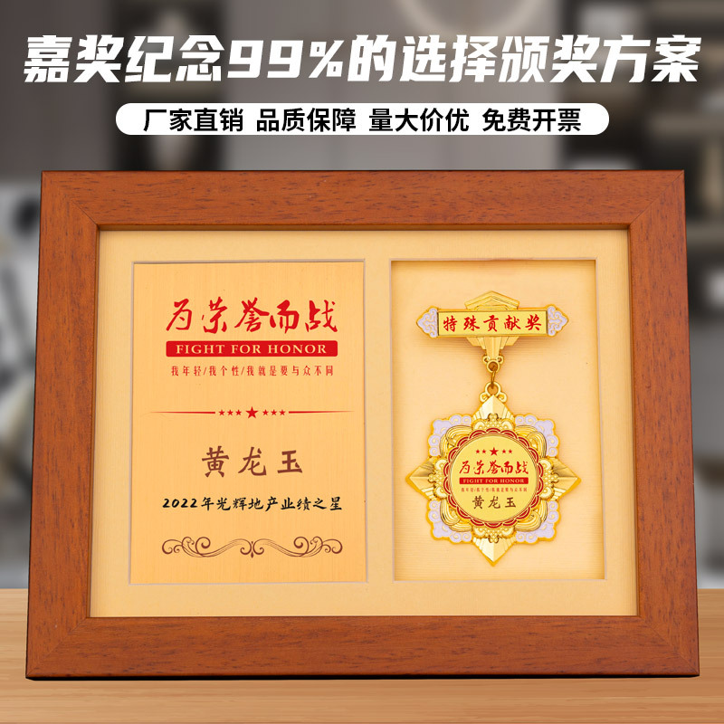 Wooden Medal Souvenir Medal Solid Wood Photo Frame Retirement Commemorative Medal Excellent Staff Medal Anniversary