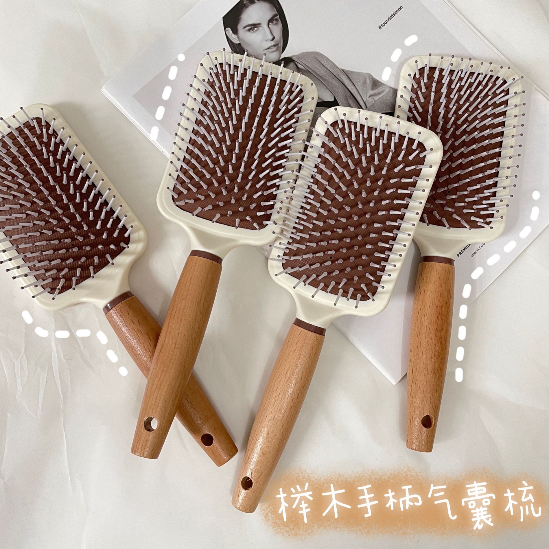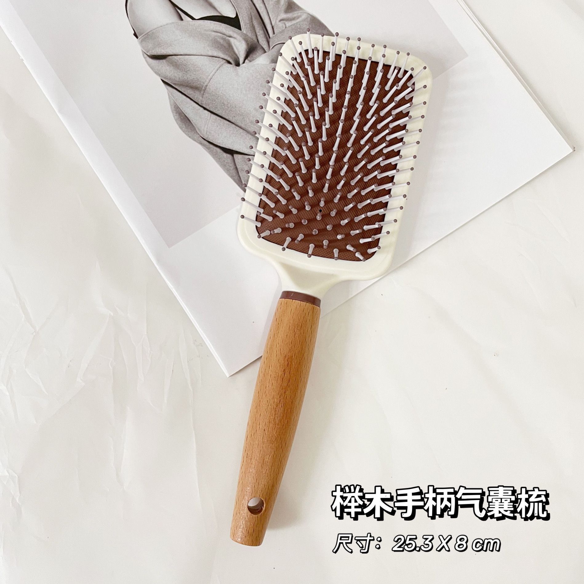 wooden handle large square airbag comb