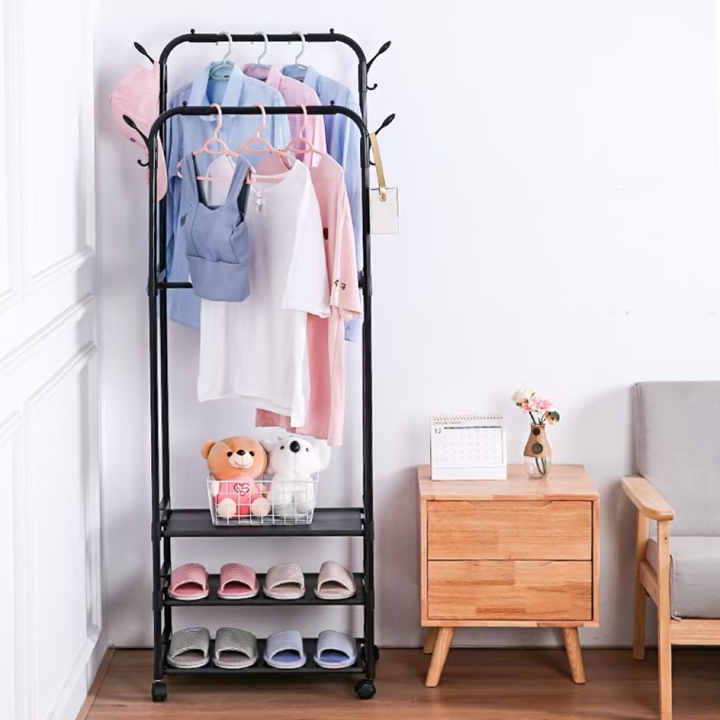 single bar parallel bars storage rack with shoe rack storage basket integrated