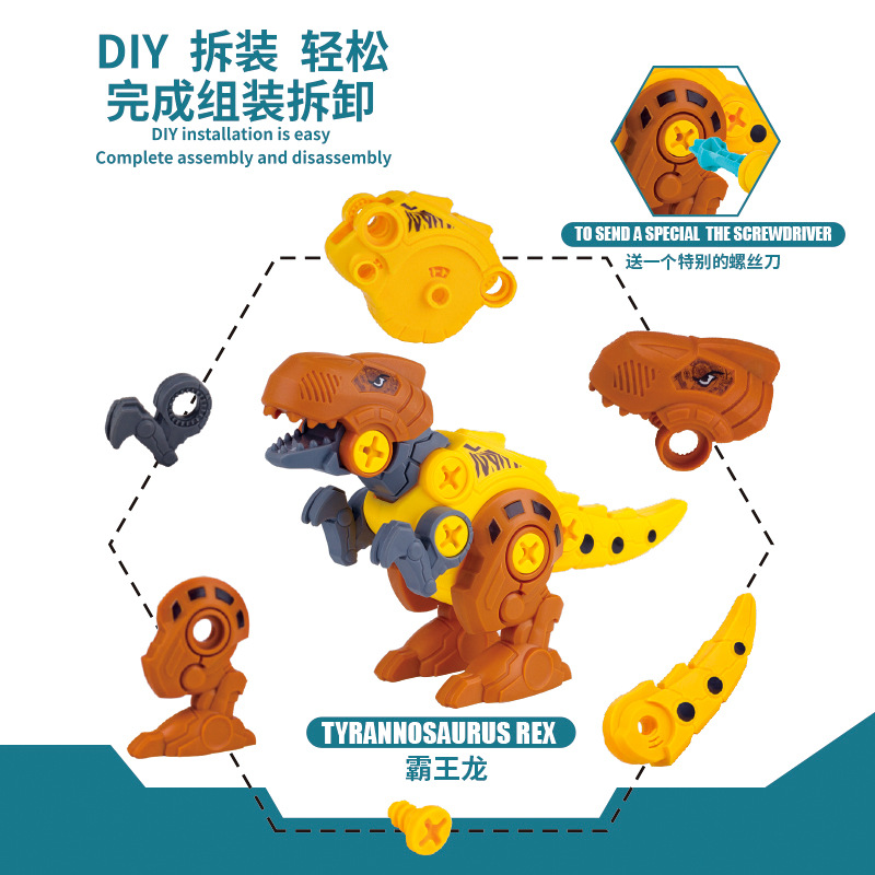 Disassembly and assembly of dinosaurs (four pieces), with 4 screwdrivers included, not just one.