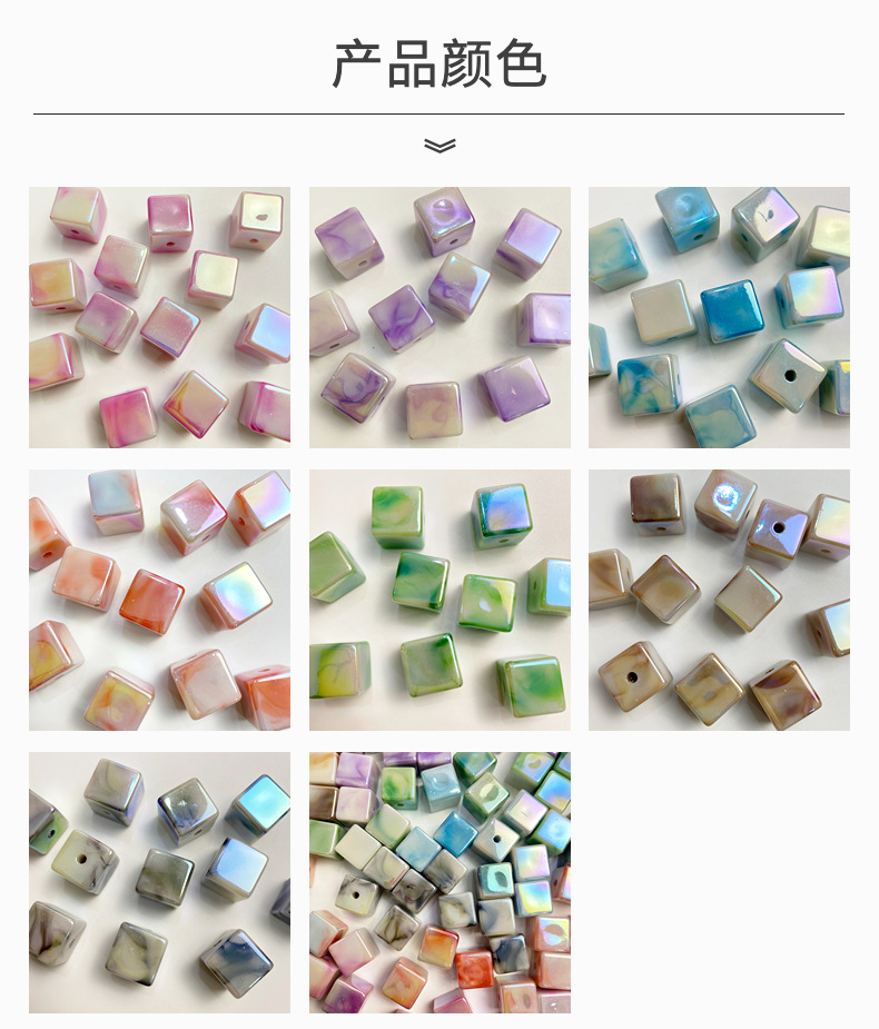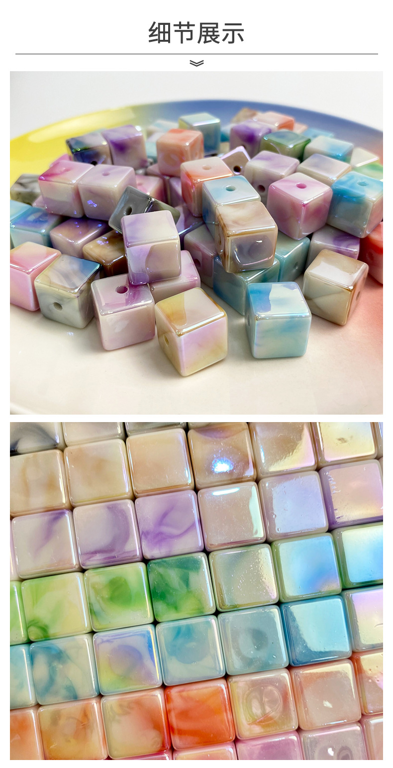 Double Color UV Square Beads DIY Handmade Bracelet String Beads Material Square Gradient Beads Cloud Mist Effect Ornament Accessories Straight Hole
