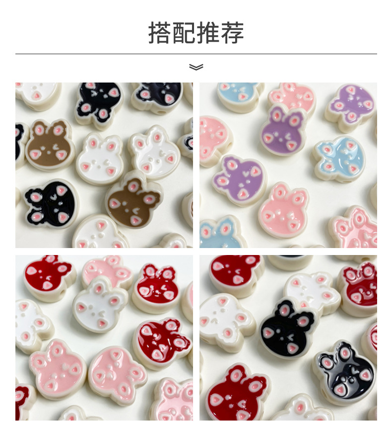 Rabbit Head Blush Dripping Oil New Year Red DIY Phone Chain String Beads Materials Animal Cartoon Cute Jewelry Accessories