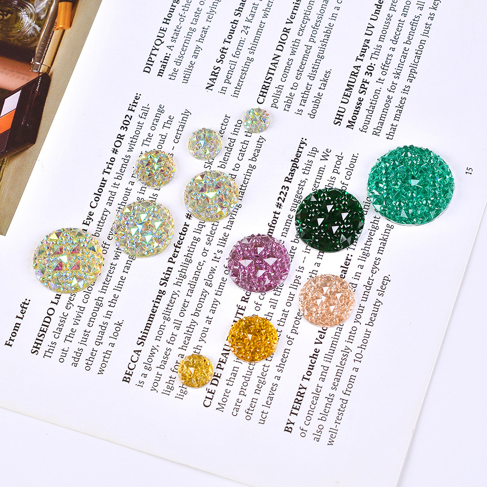 树脂饰品圆形平底小方格面树脂钻可打双孔手缝树脂钻源头厂家批发