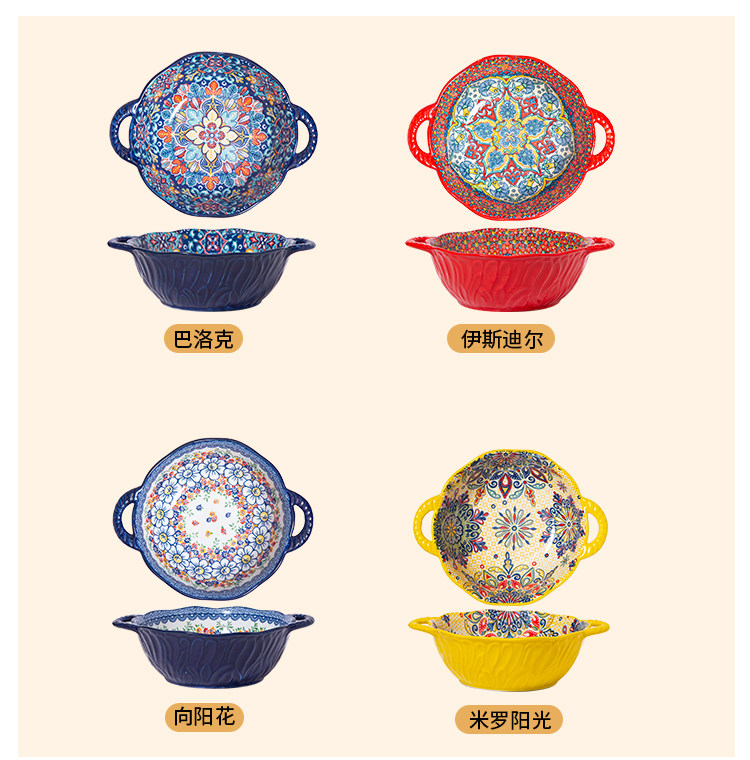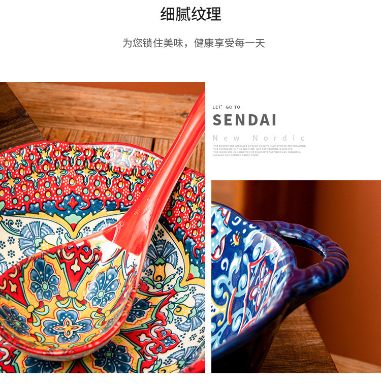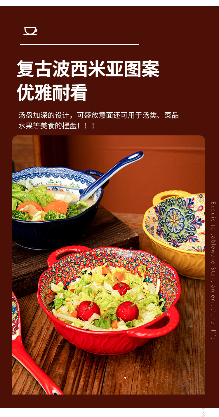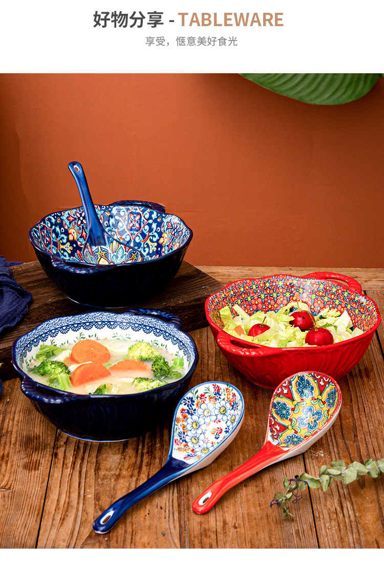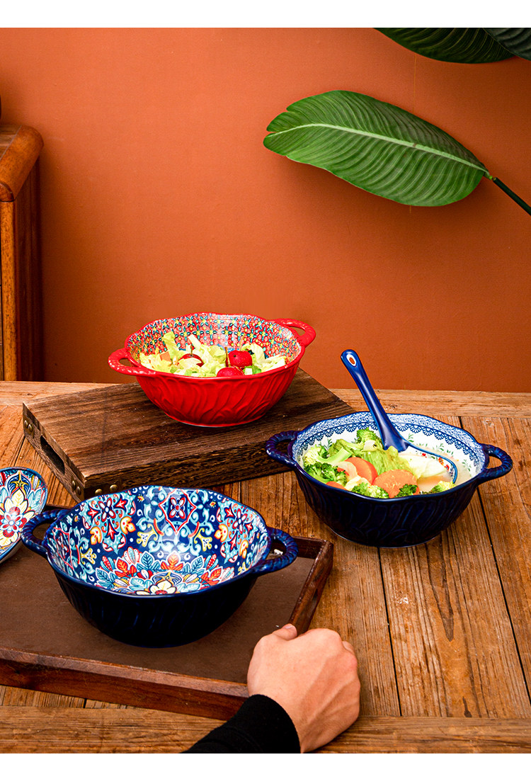 bohemian binaural soup bowl household ceramic salad bowl instant noodle bowl internet celebrity tableware ramen bowl