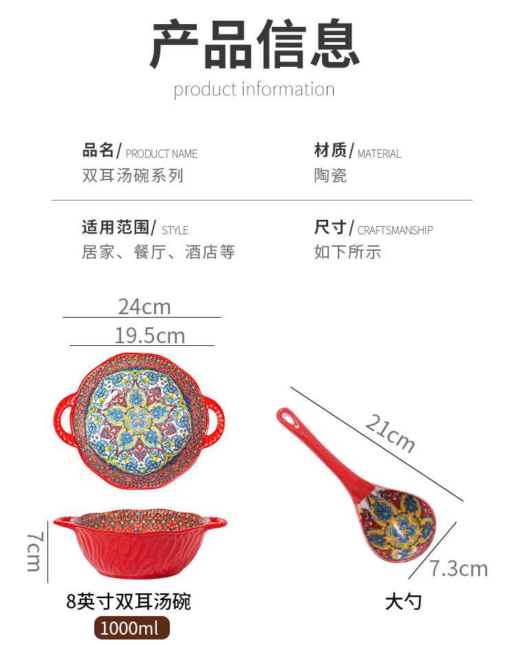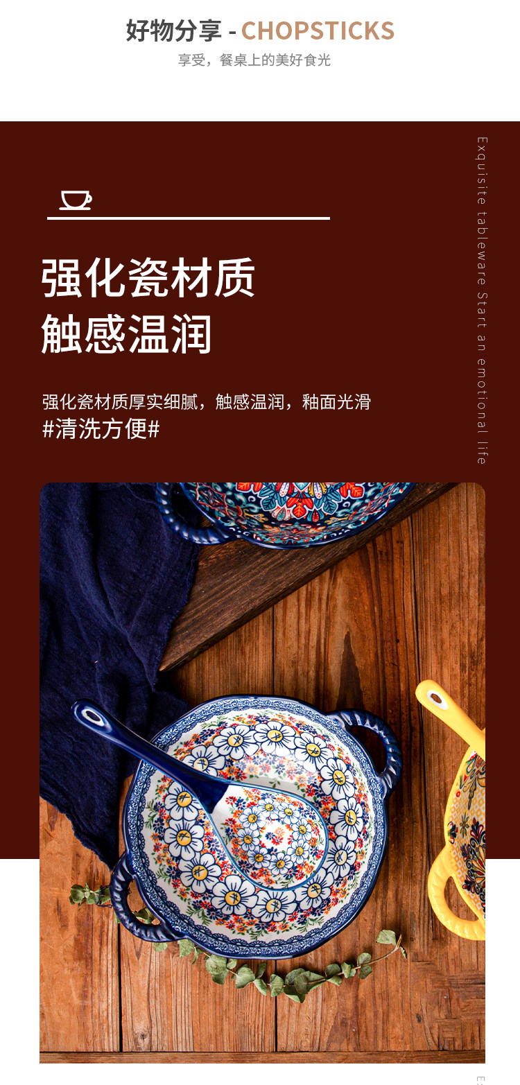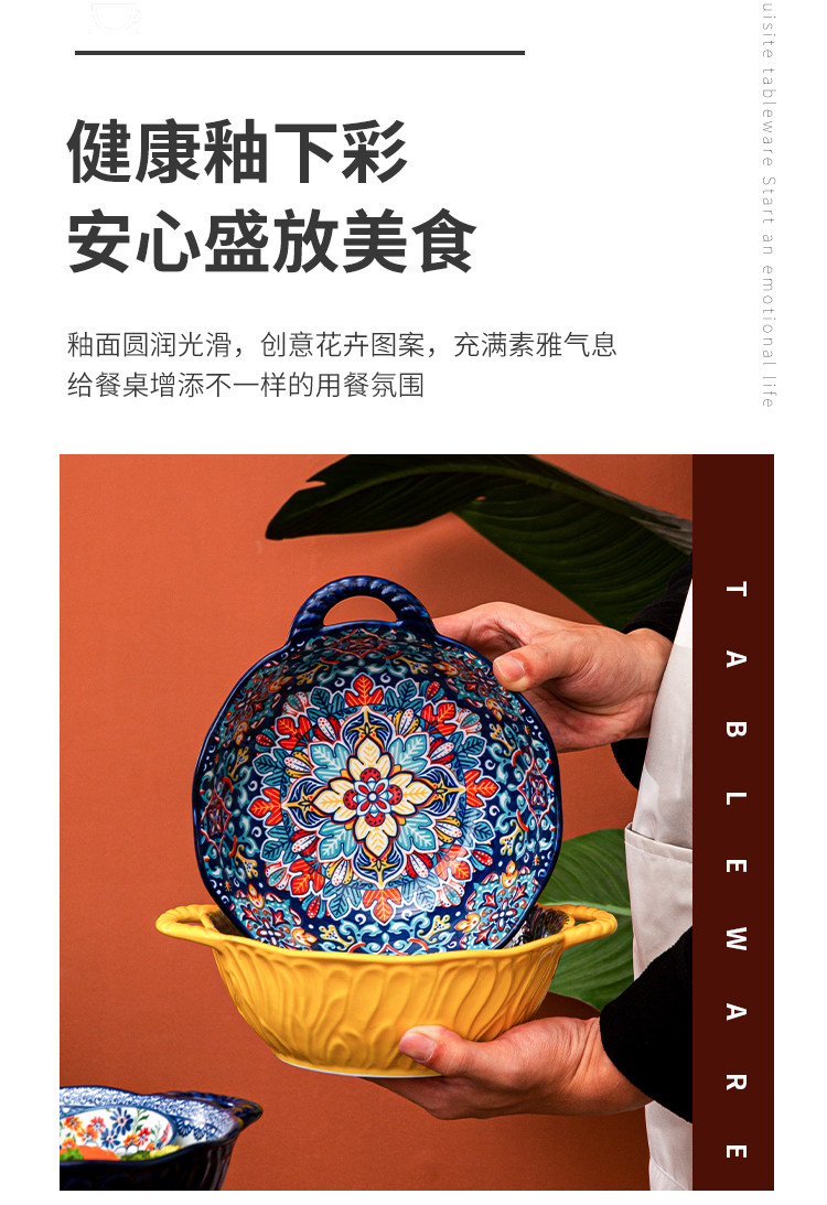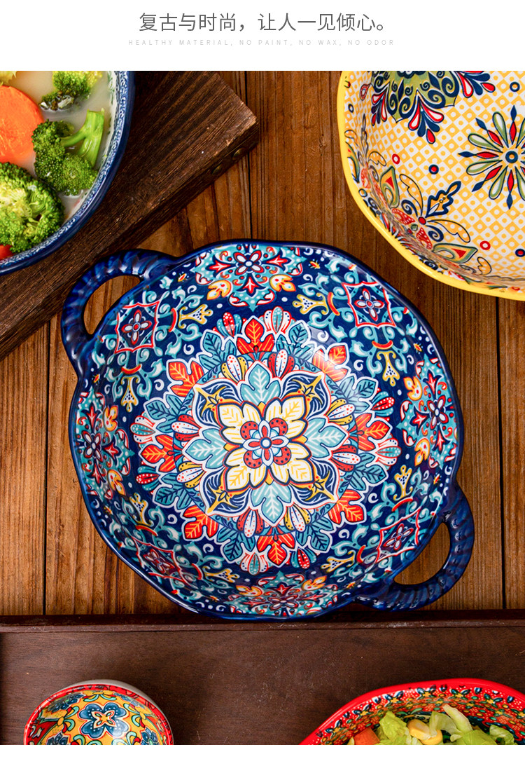 bohemian binaural soup bowl household ceramic salad bowl instant noodle bowl internet celebrity tableware ramen bowl
