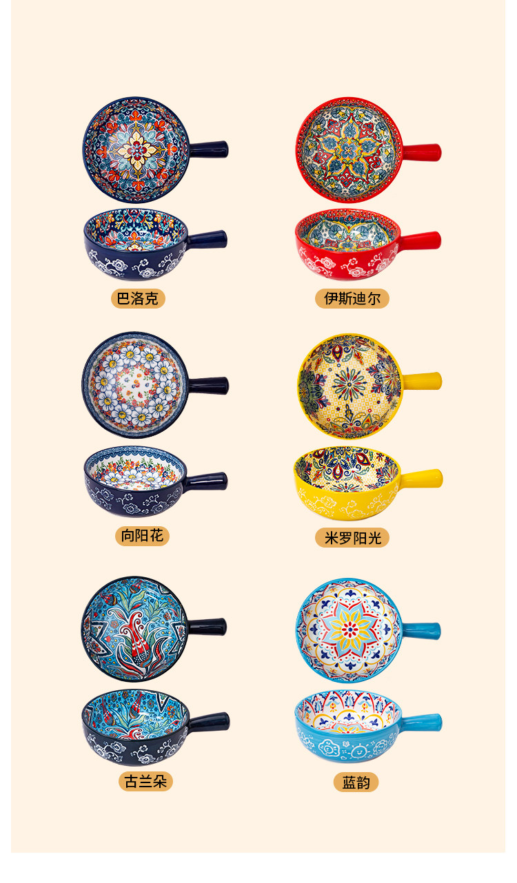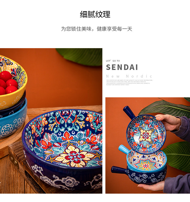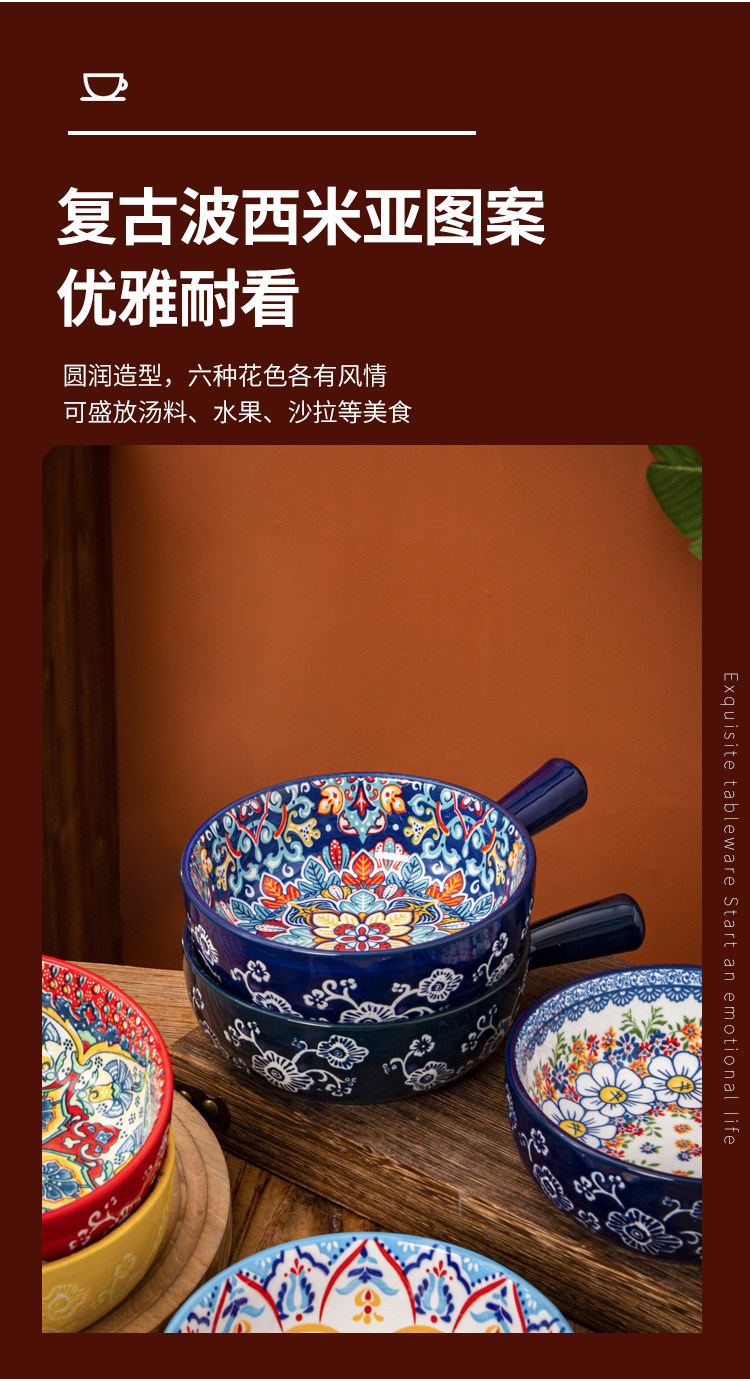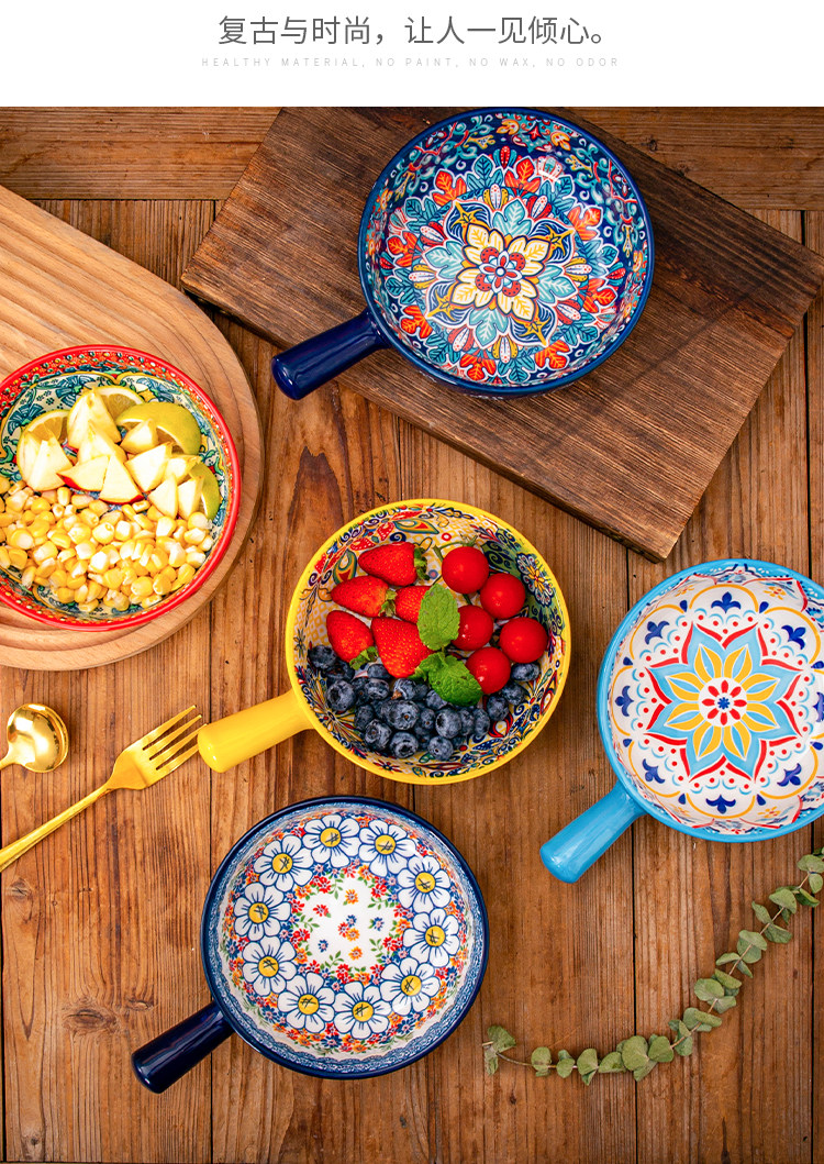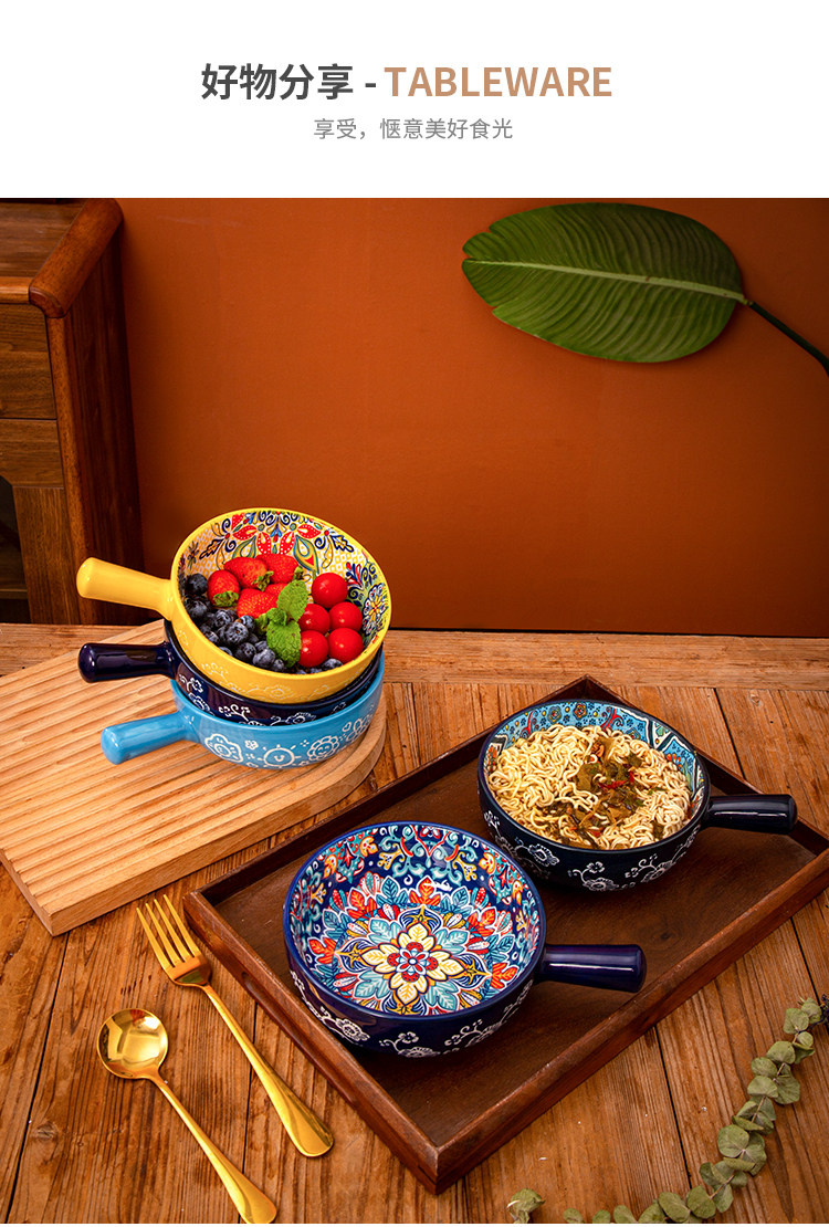 bohemian ceramic handle bowl home salad bowl oven with handle instant noodle bowl baking bowl