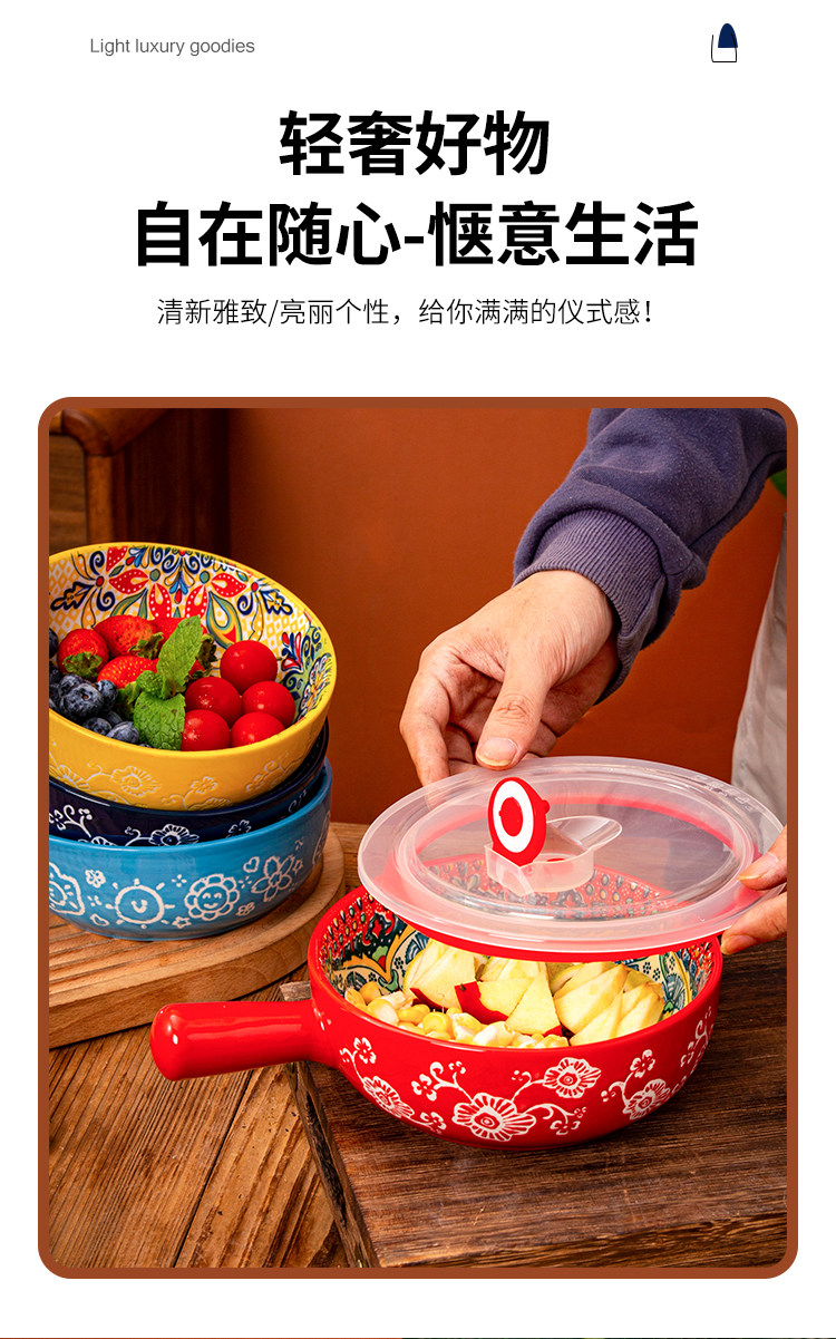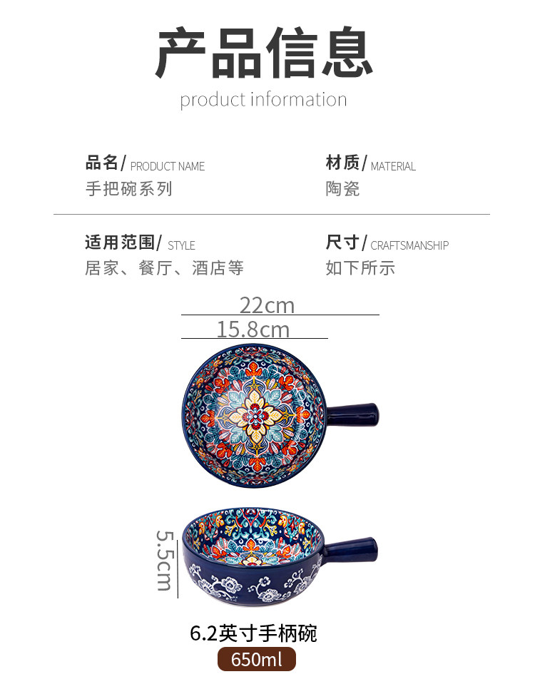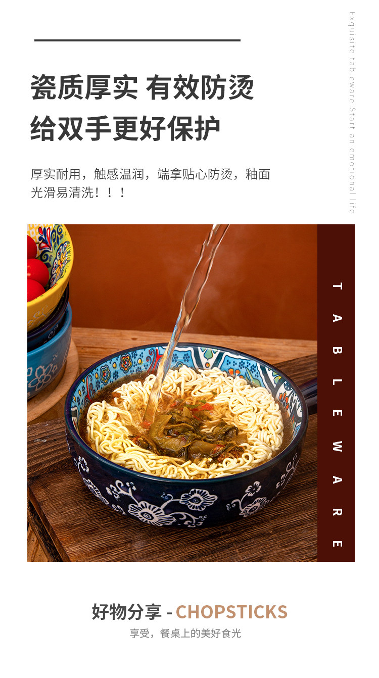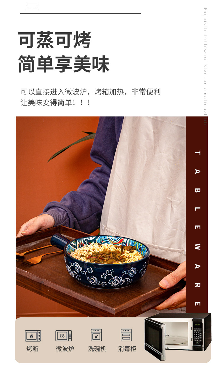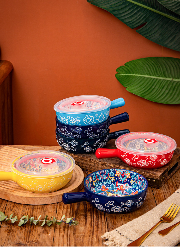 bohemian ceramic handle bowl home salad bowl oven with handle instant noodle bowl baking bowl