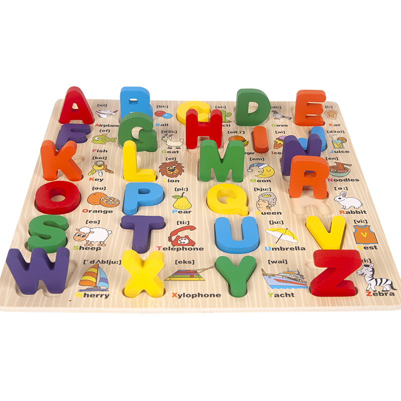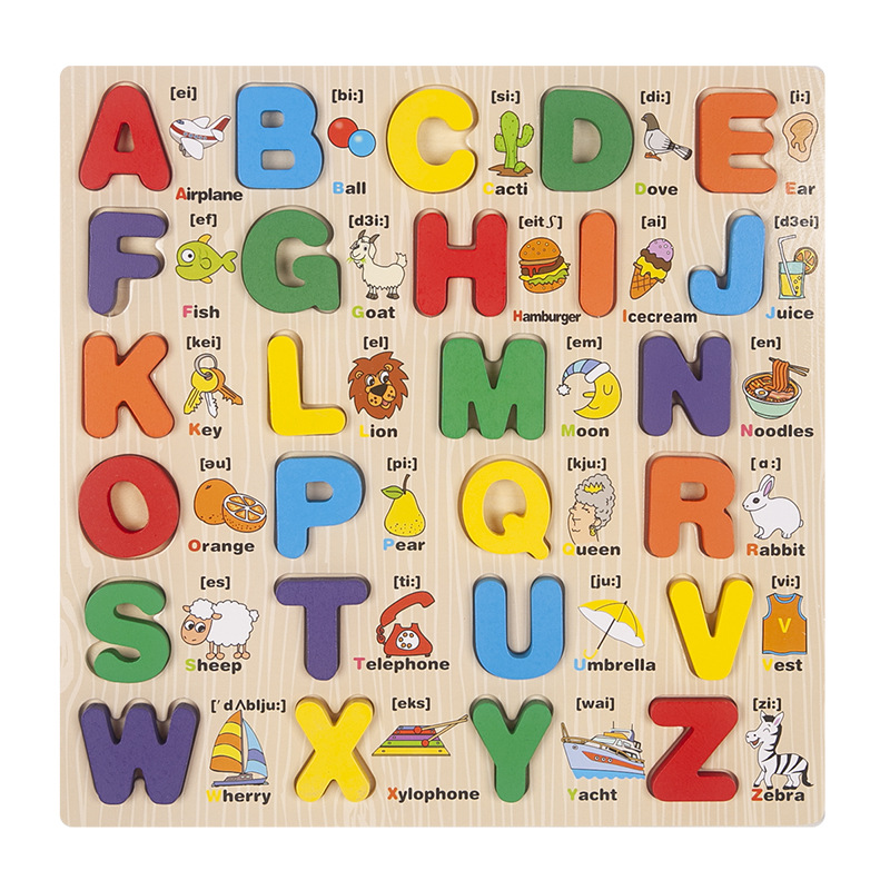 Wooden Children's Early Education Case Letters Numbers Cognition Baby Enlightenment Puzzle 3D Puzzle Model Grab Board Toys