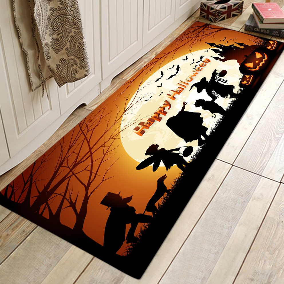 Halloween New Flannel Printed Mat Halloween Kitchen Floor Mat Bathroom Non-Slip Mat Foot Mats Floor Mat