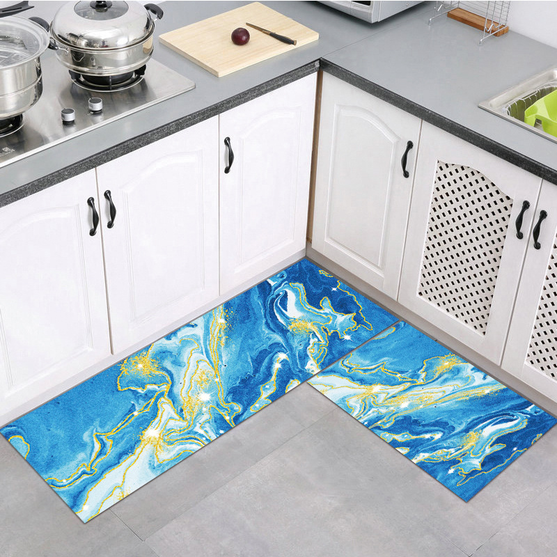 Cross-Border Hot Selling Marble Texture Flannel Floor Mat Living Room and Bathroom Non-Slip Foot Mat Carpet Household Mat