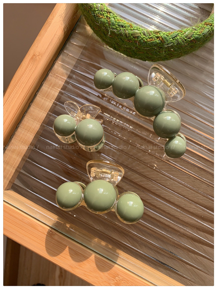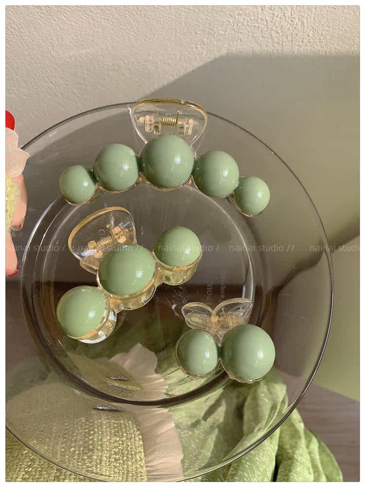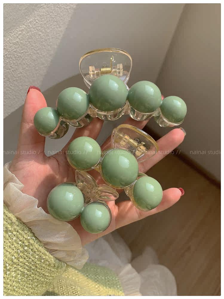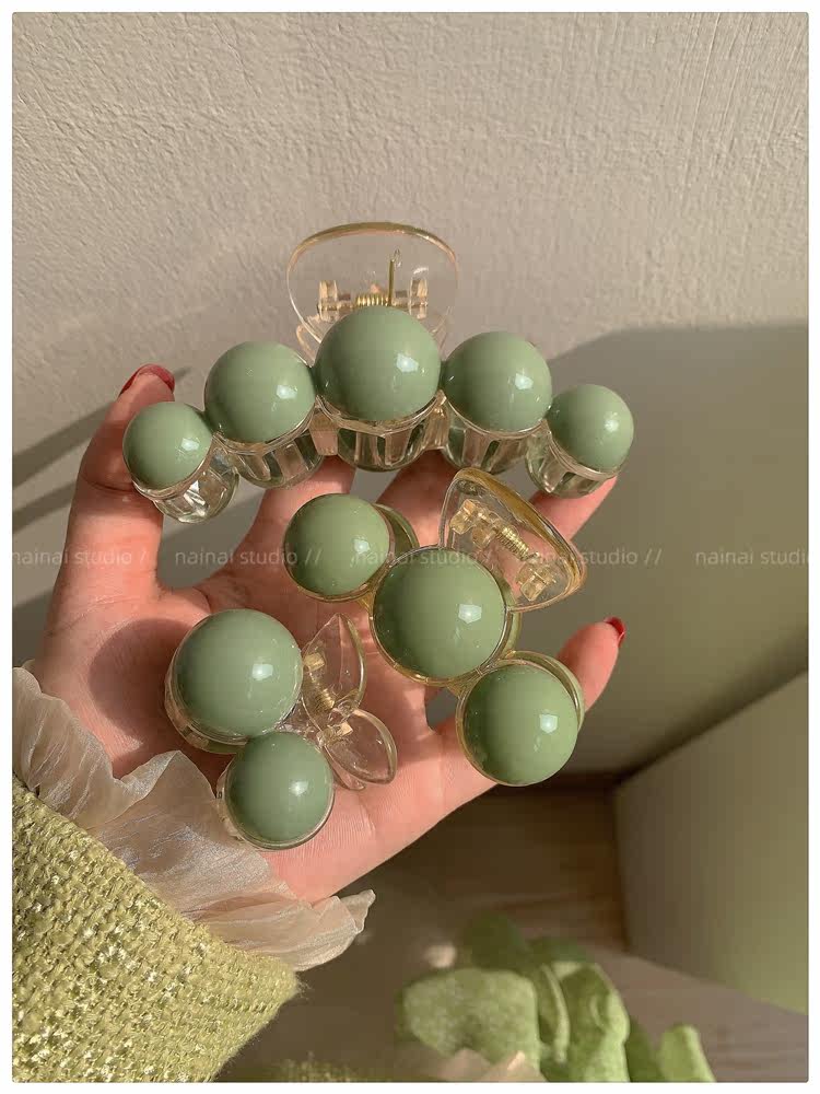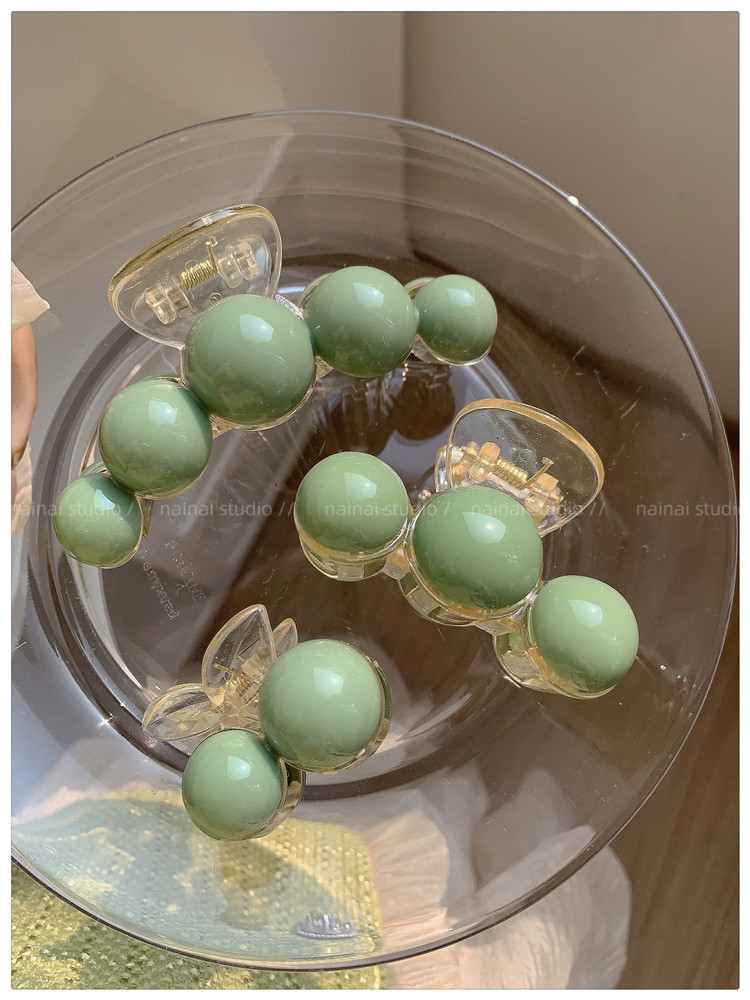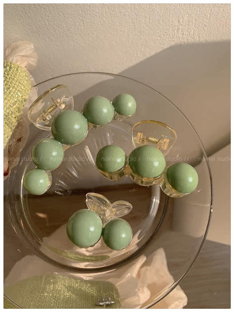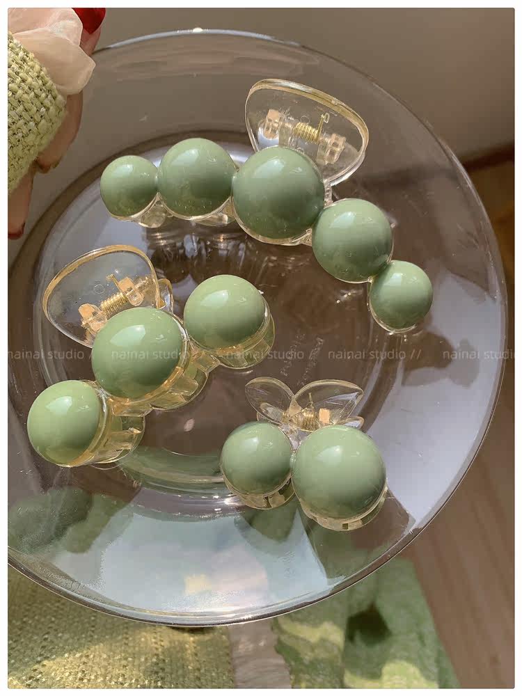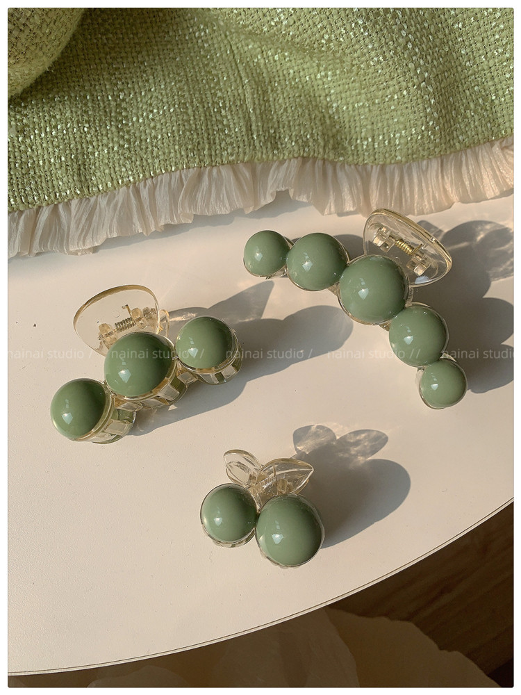 green beanie grip ~ acrylic ball back head shark clip cherry 2023 spring new hair accessories female