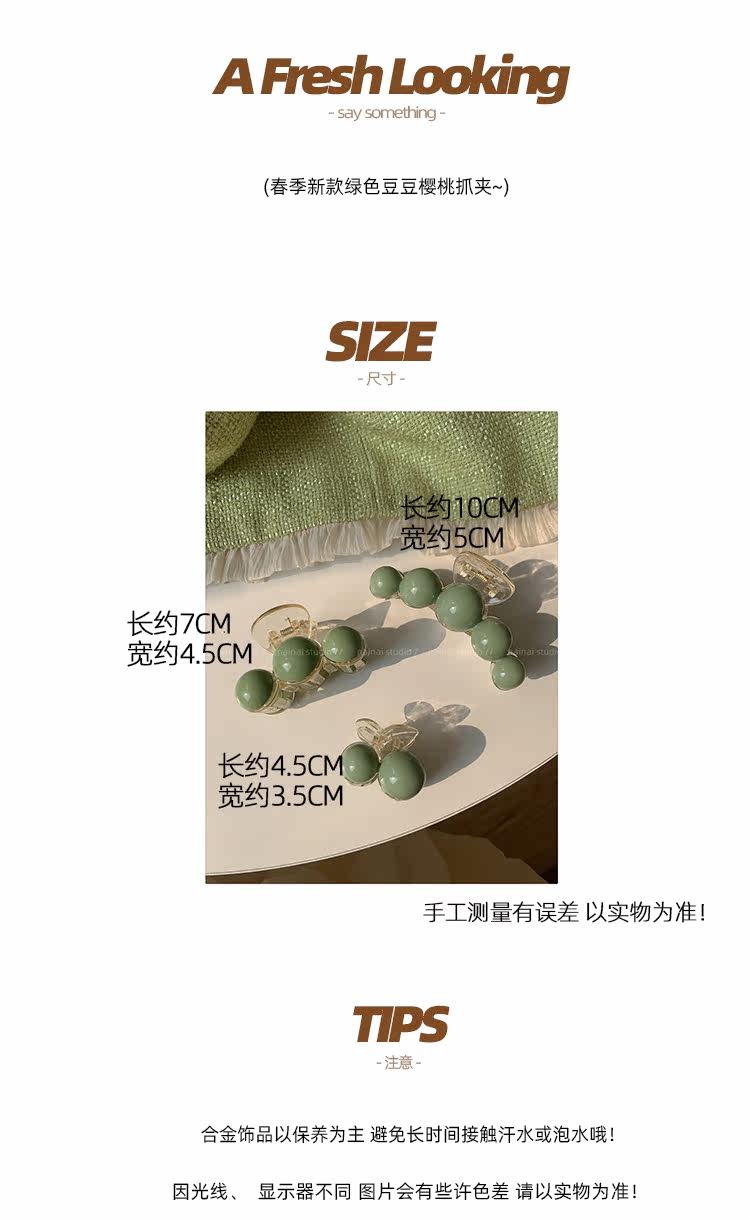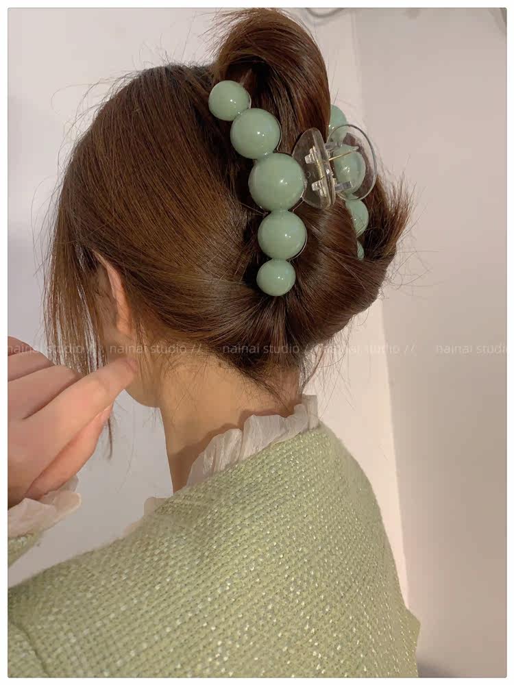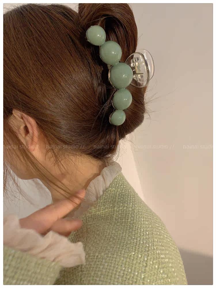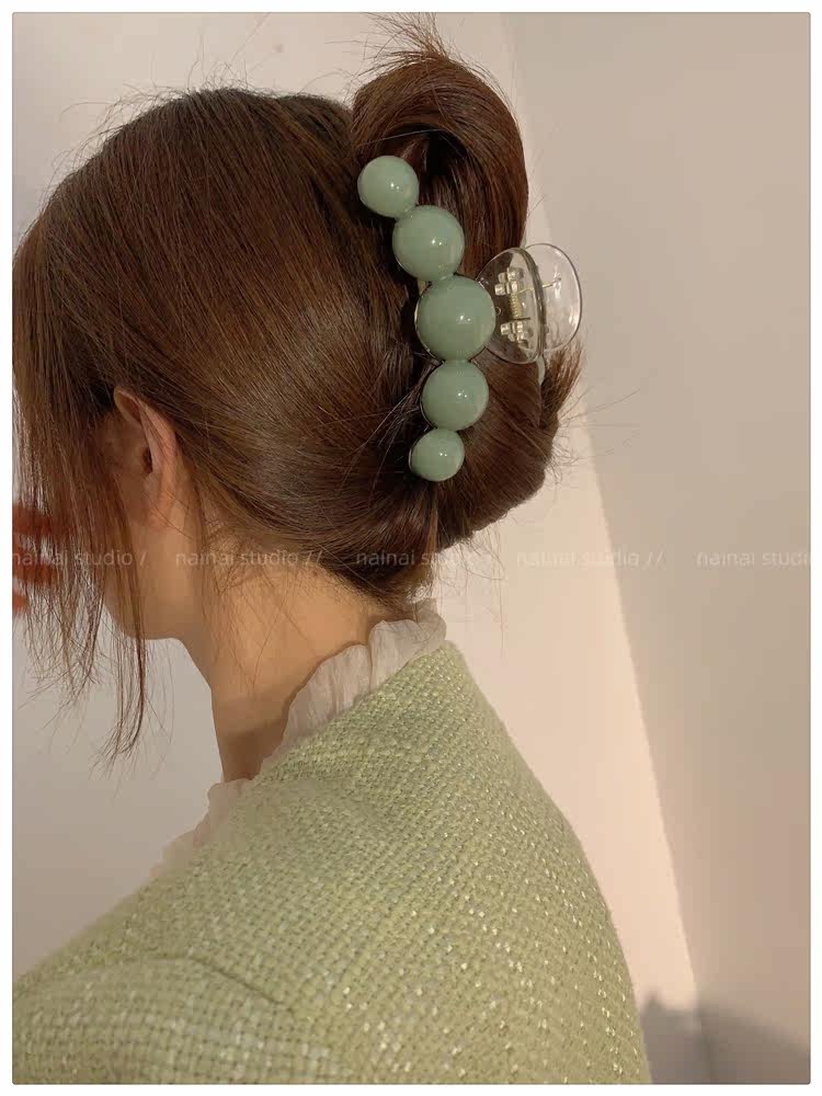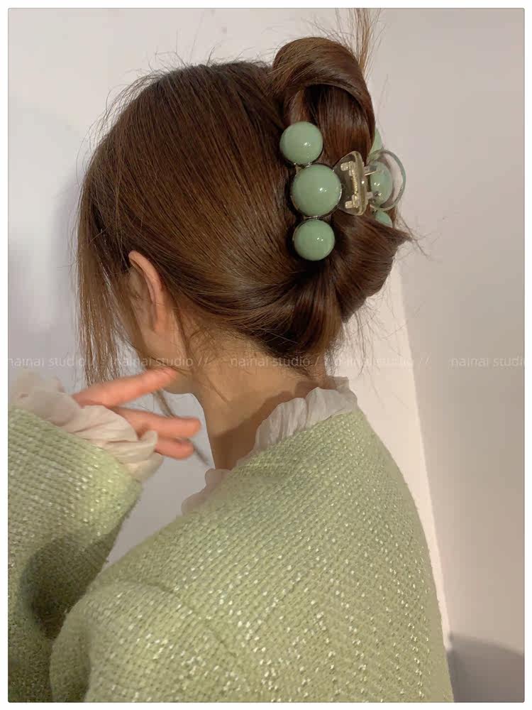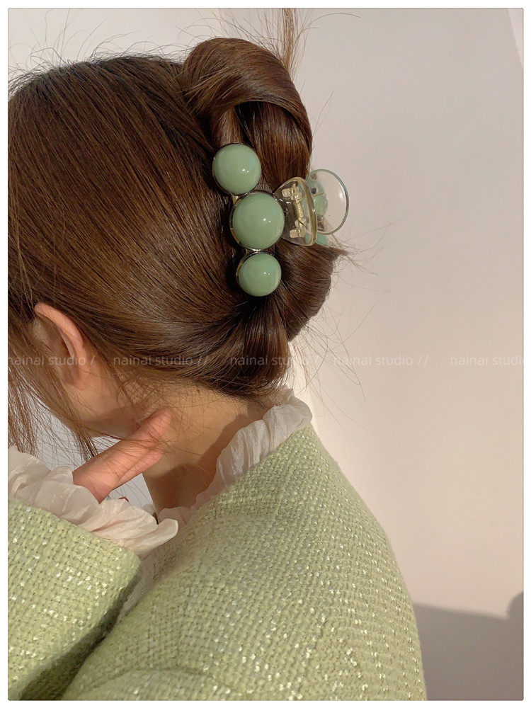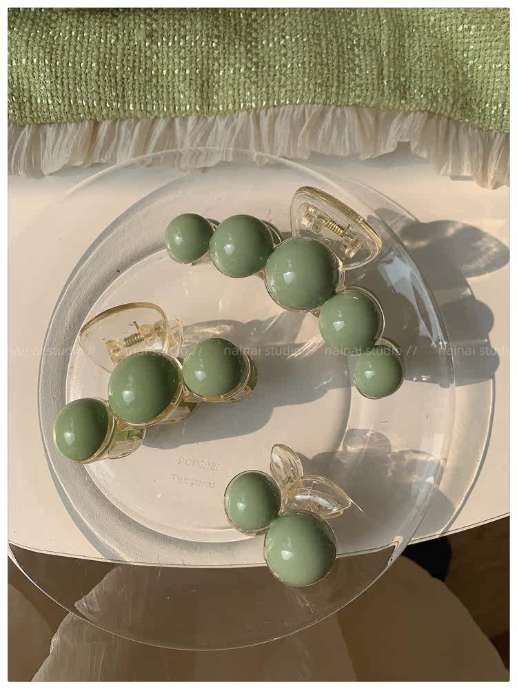 green beanie grip ~ acrylic ball back head shark clip cherry 2023 spring new hair accessories female