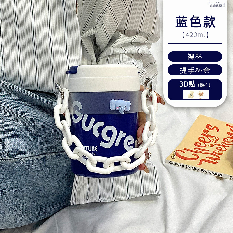 blue white cover + iron chain frosted semi-transparent cup cover + diy cartoon stickers random 5: default item