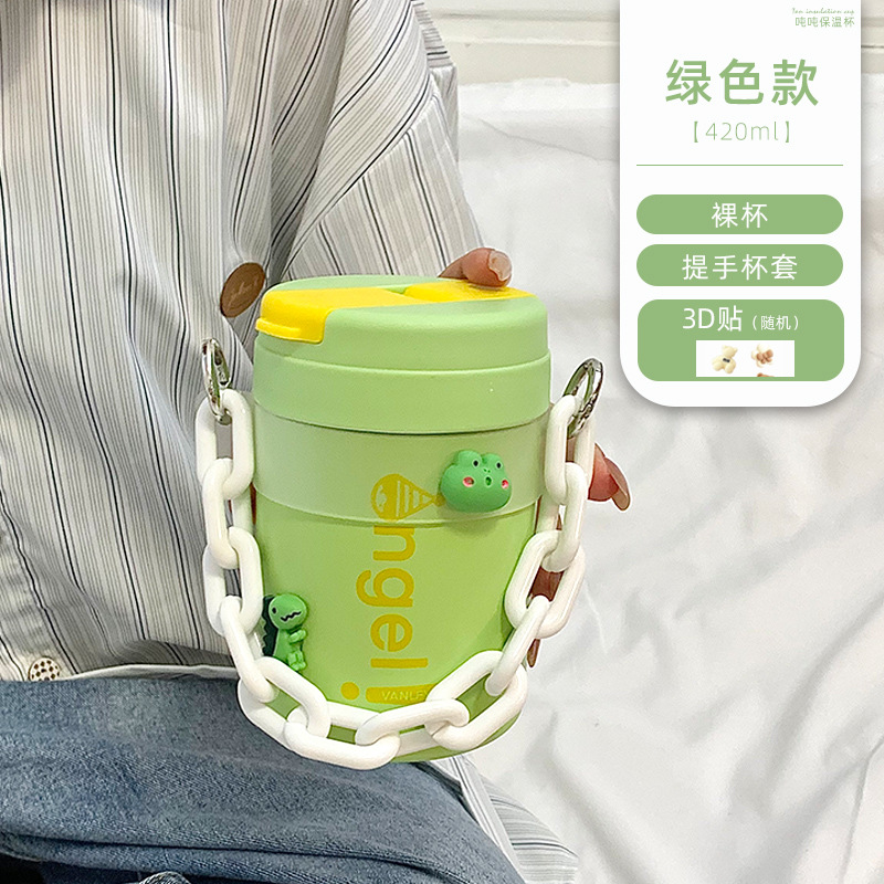 green + iron chain frosted semi-transparent cup cover + diy cartoon stickers random 5: default item