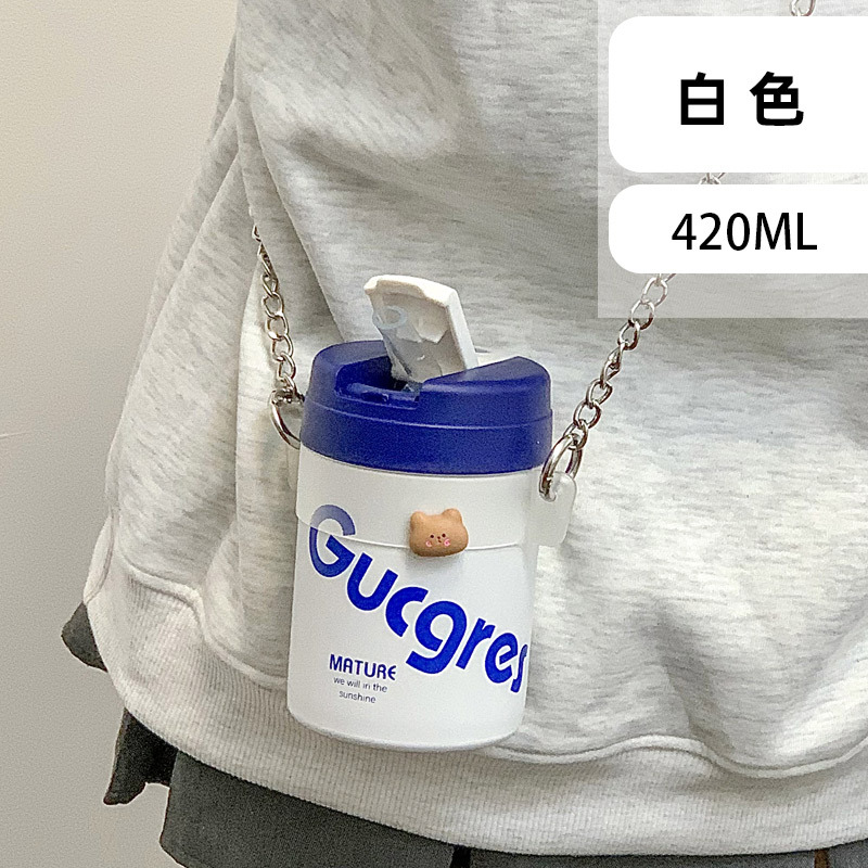 white blue cover + iron chain frosted semi-transparent cup cover + diy cartoon stickers random 5: default item