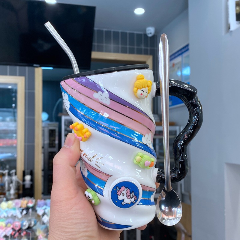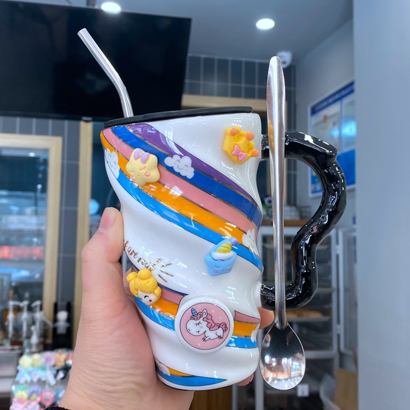 yellow and blue (with cover spoon + 3d stickers + steel straw):520ml