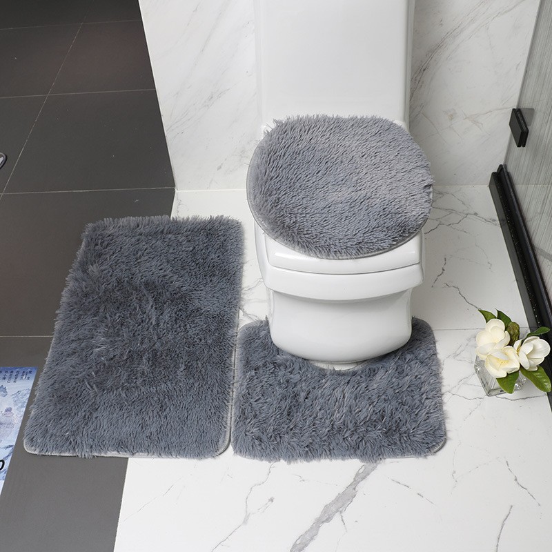 Foreign Trade Cross-Border Solid Color Filament Wool Toilet Three-Piece Floor Mat Non-Slip Bathroom Combination Floor Mat Set Carpet