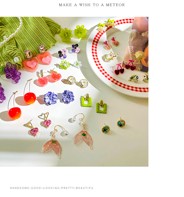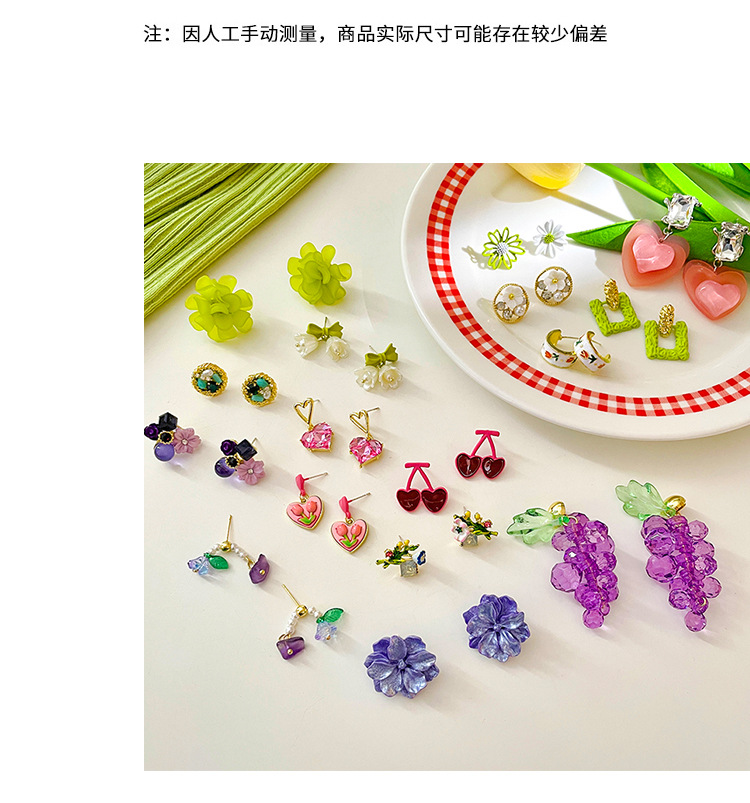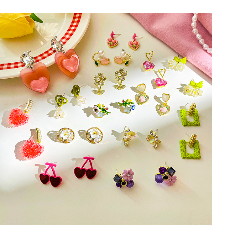 Sterling Silver Needle Colored Series Girly Earrings 2023 New Fashion Cute Flowers Love Fresh Earrings Wholesale
