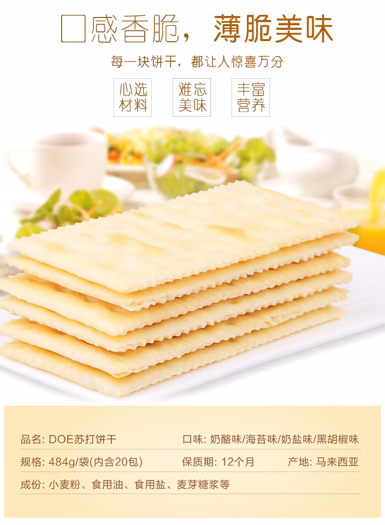 【洋掌柜测评:马来西亚DOE奶苏打饼干484g】