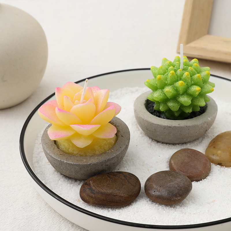 simulation plant succulent candle cement bottom creative plant modeling wax home decoration hand gift factory wholesale