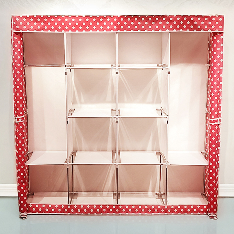 wholesale simple wardrobe large four columns bedroom storage cabinet steel tube household rental dormitory finishing assembly wardrobe