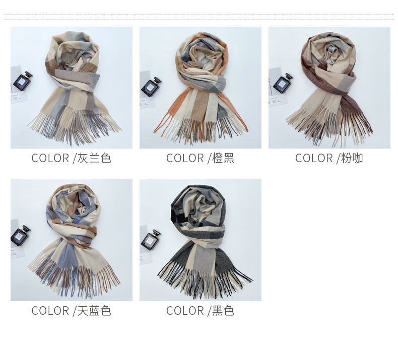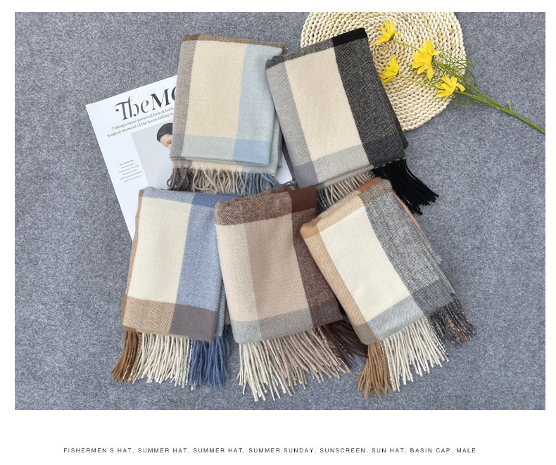 new plaid scarf women's japanese and korean style sweet warm scarf fashion shawl autumn and winter student artificial cashmere scarf