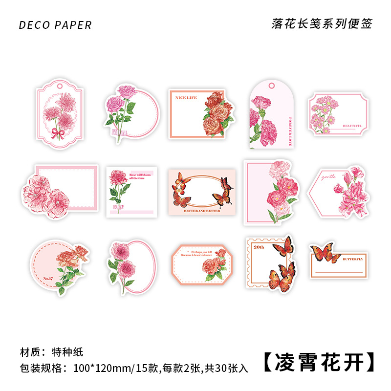 Falling Flower Long Note Series Note Romantic Flower Plant Hand Account Collage Material Message Paper 4 Types