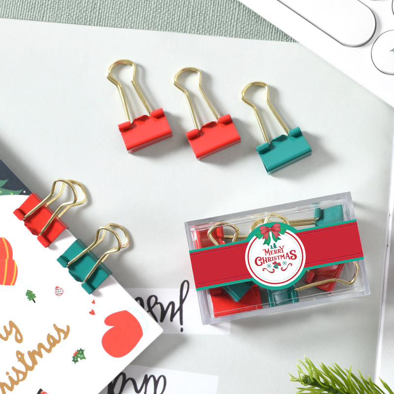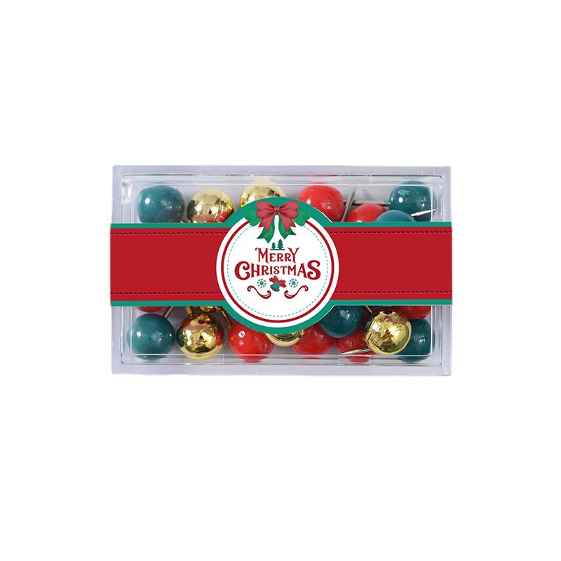 Amazon Christmas Small Square Box Office Binding Stationery Gift Ins Style Red Green Gold Clip Ticket Holder Pushpin