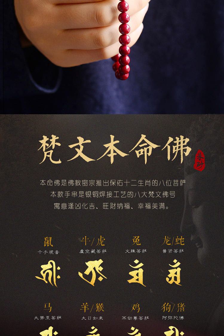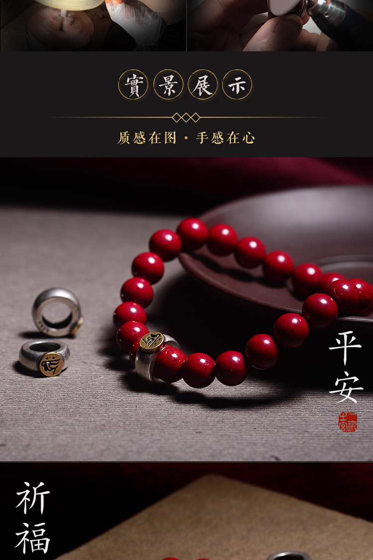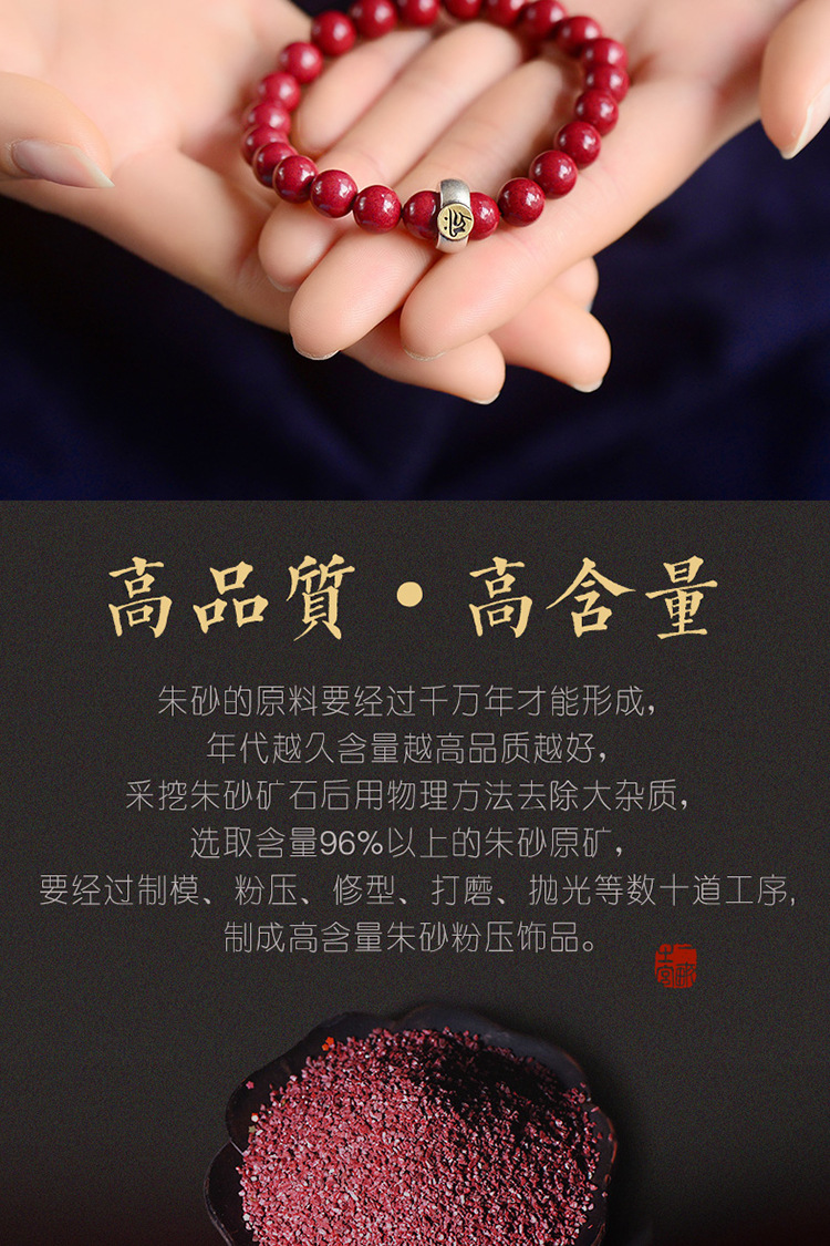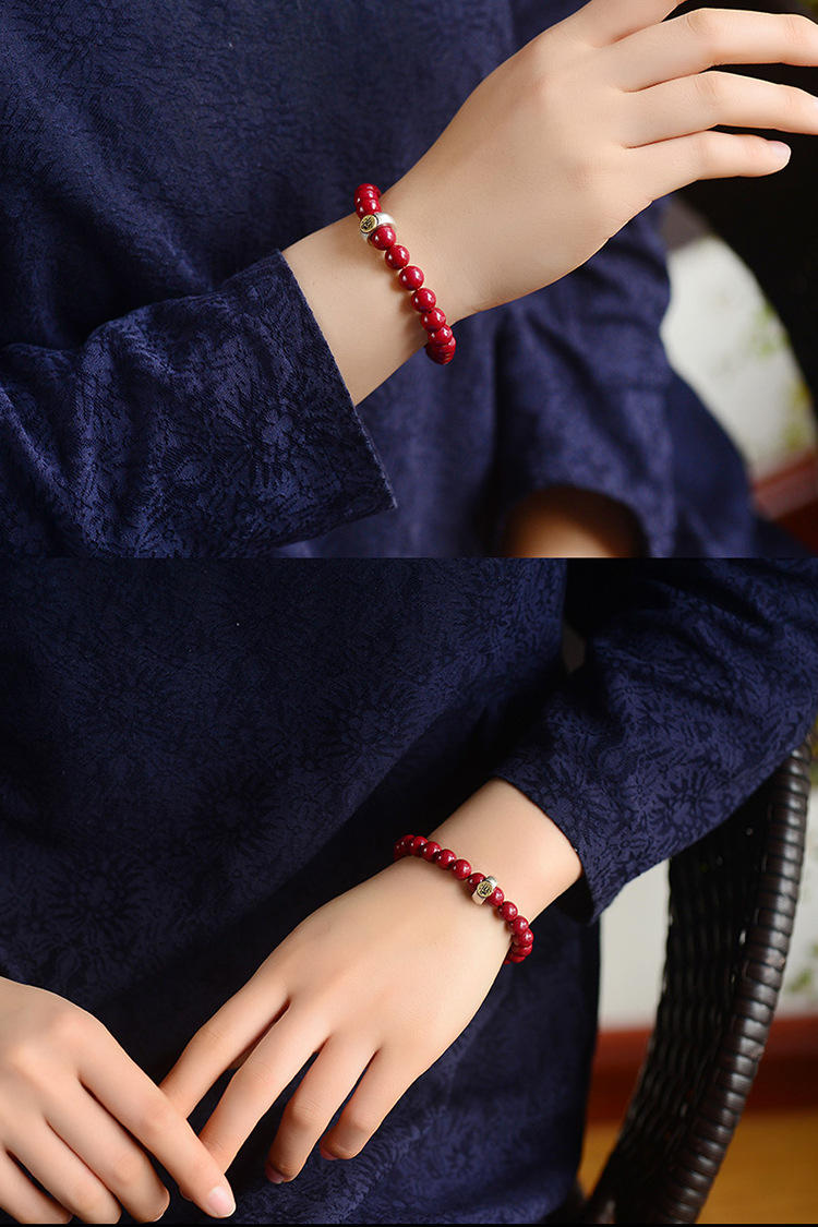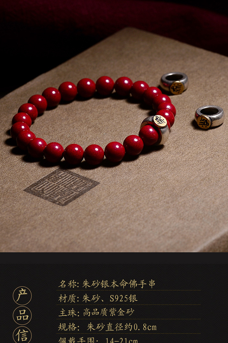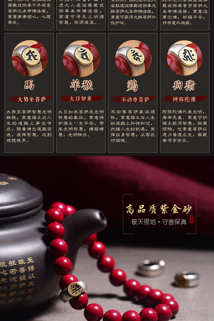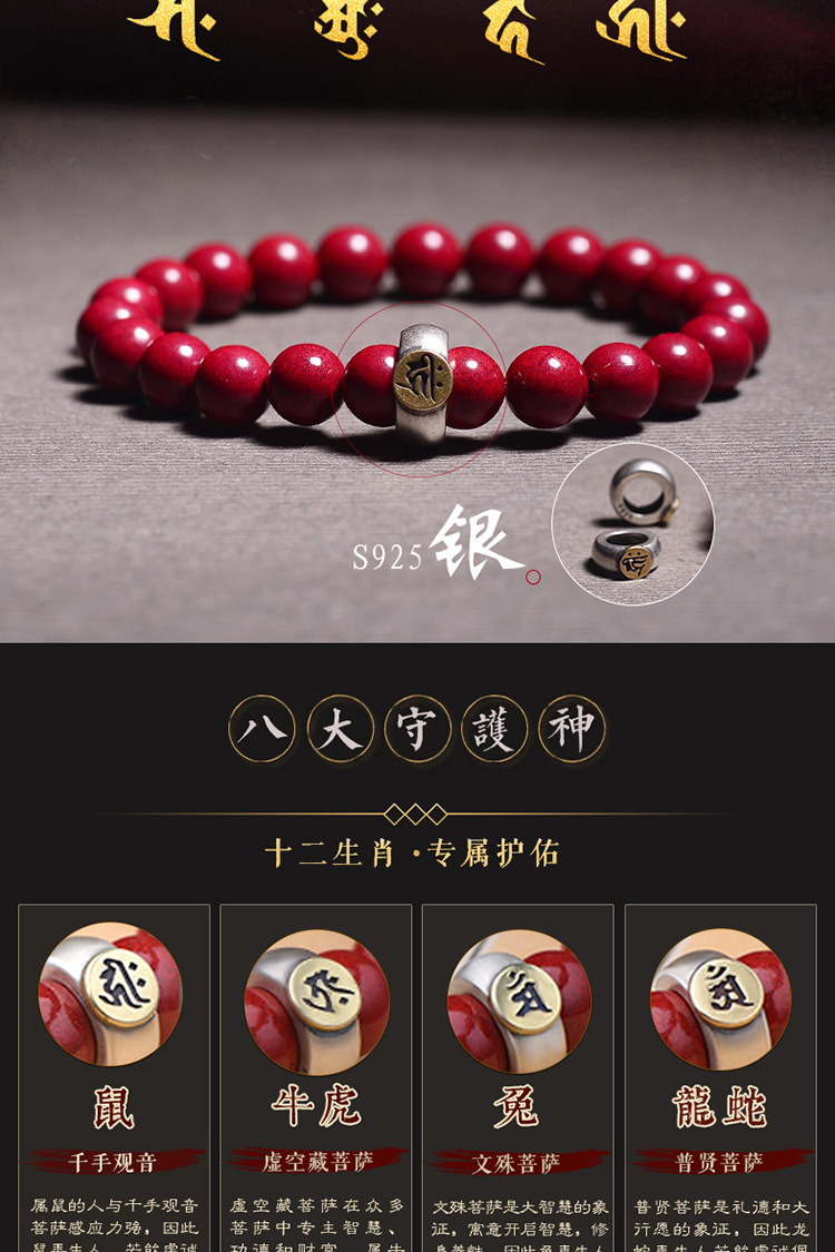 Raw Ore Cinnabar Bracelet 925 Silver Birth Year Zodiac Rat Guardian Bracelet Horse Rabbit Purple Gold Sand Birth Buddha Men and Women