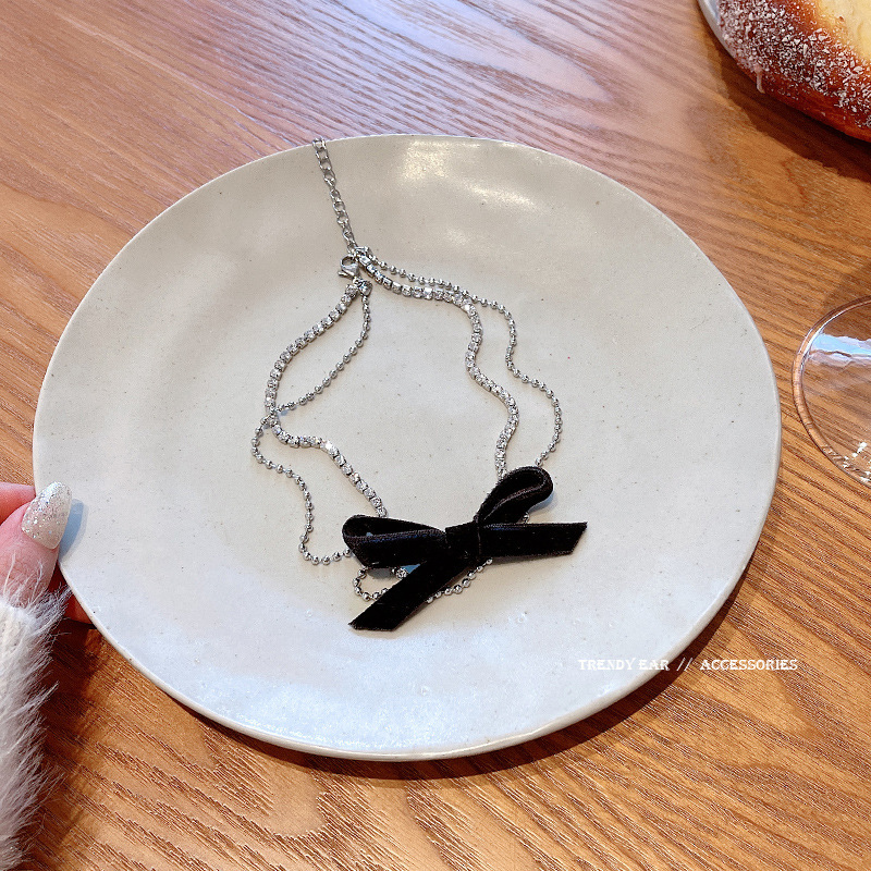 double black bow necklace