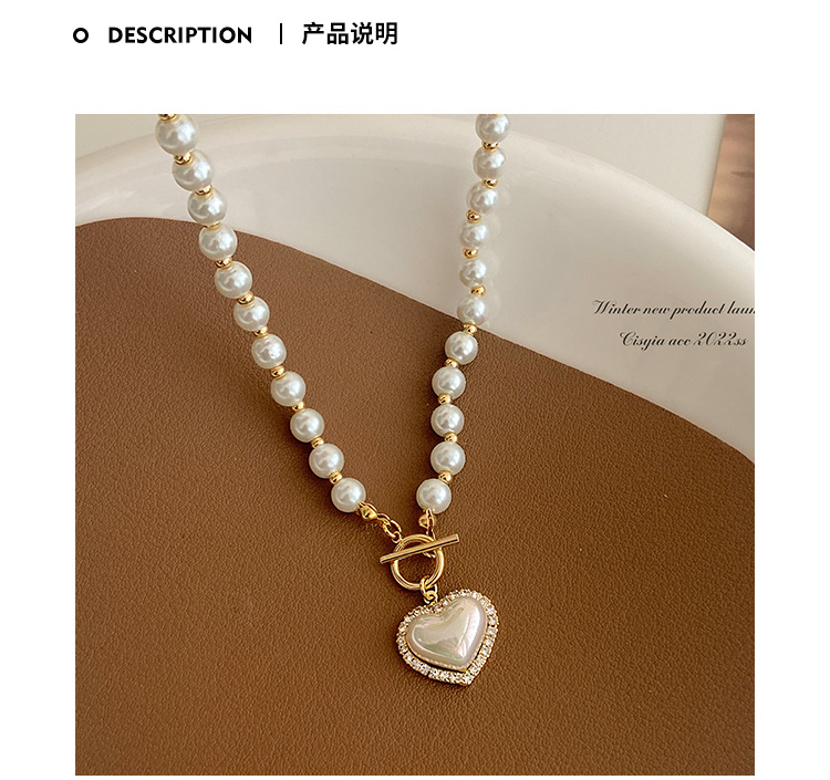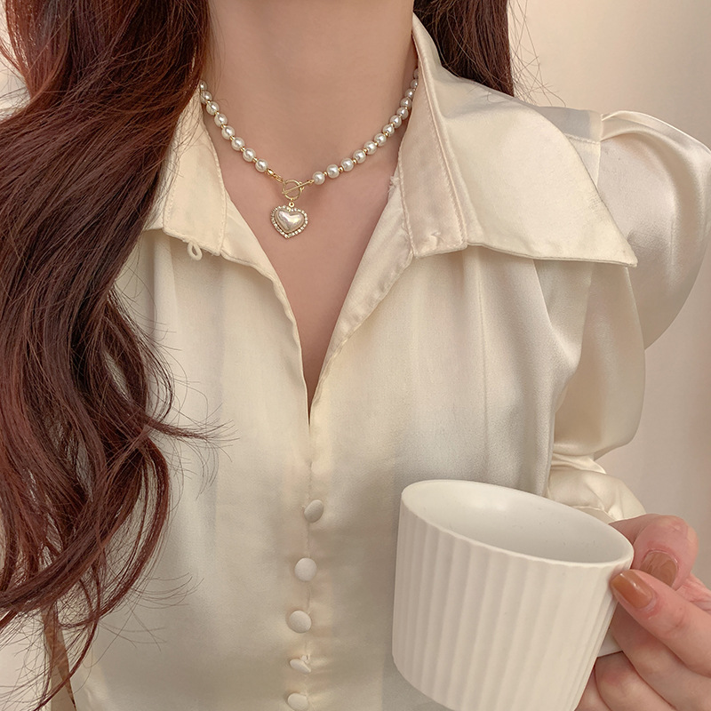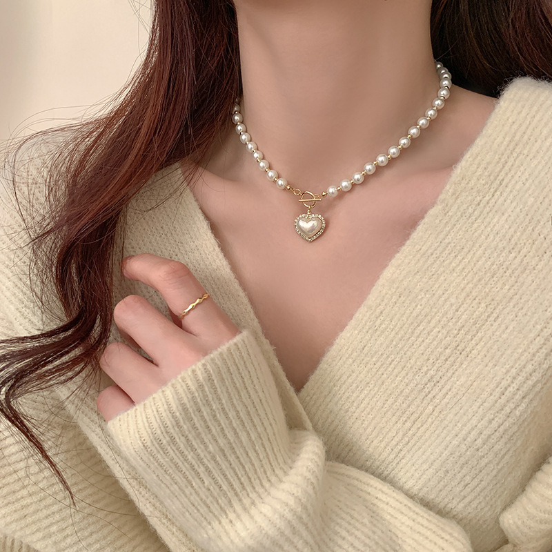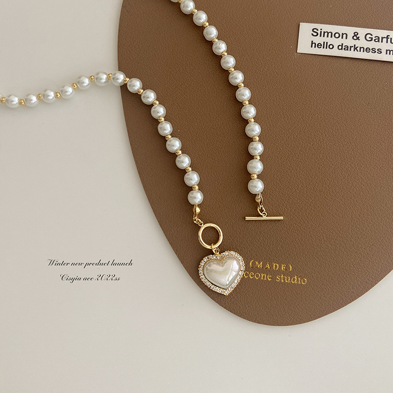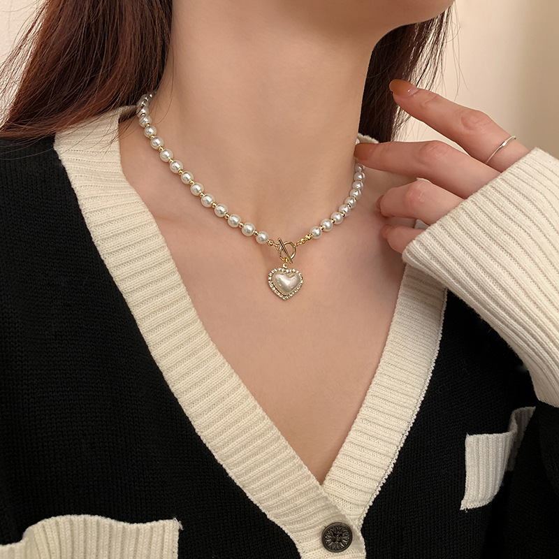 ot buckle imitation pearl love necklace