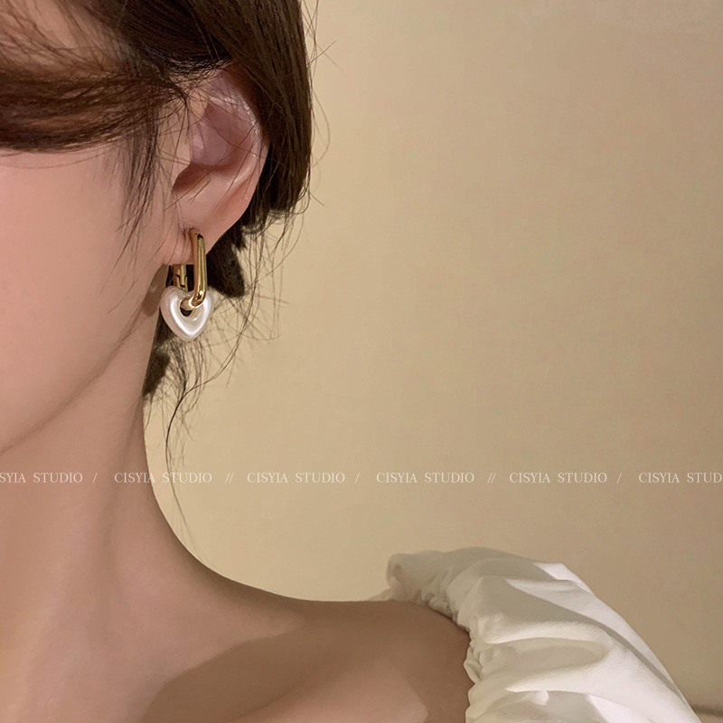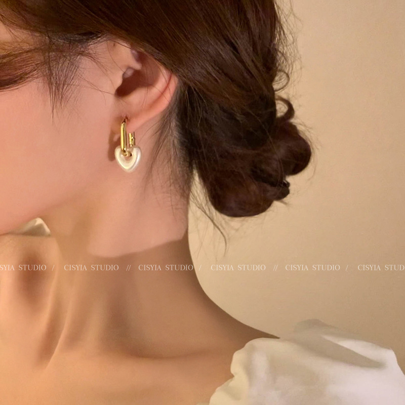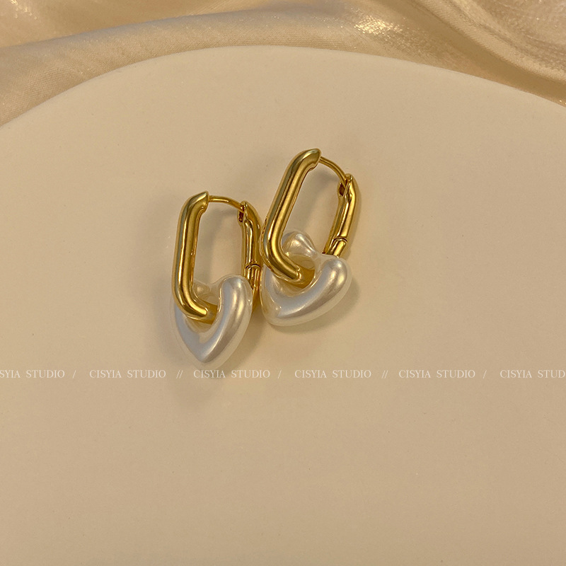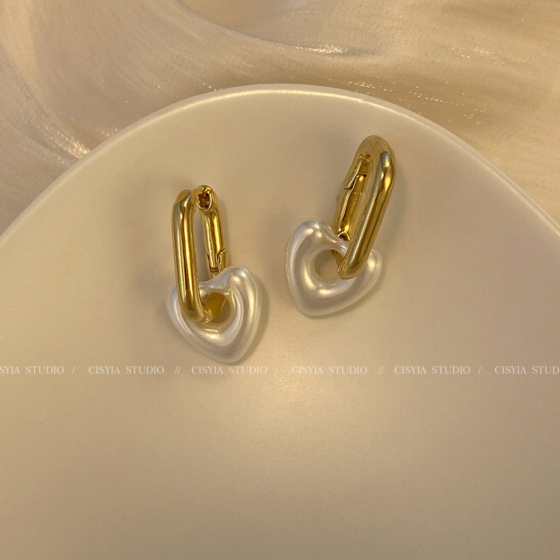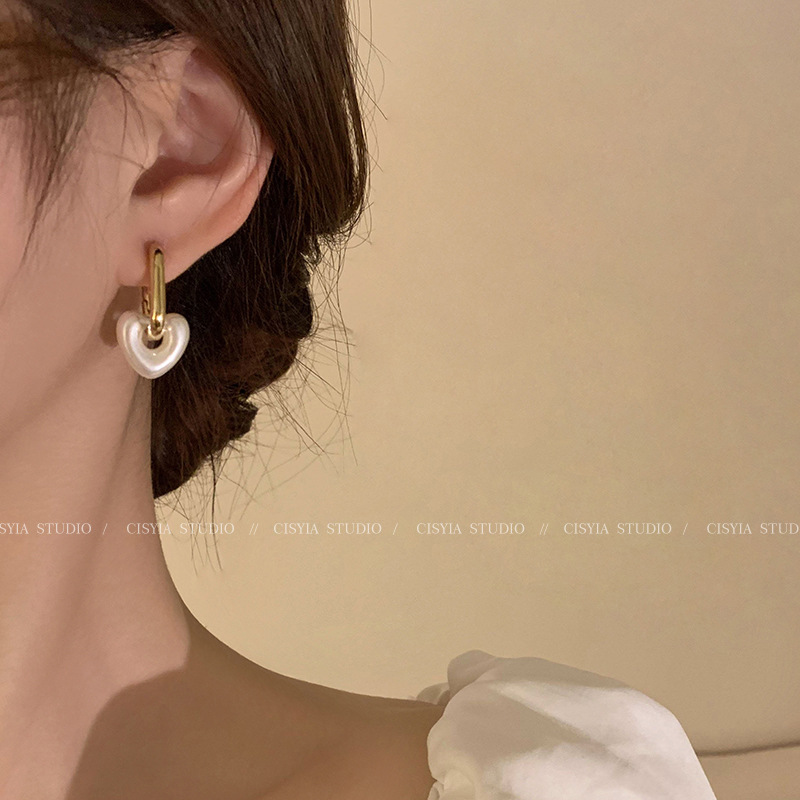 hollow out love pearl ear clip