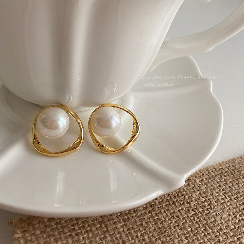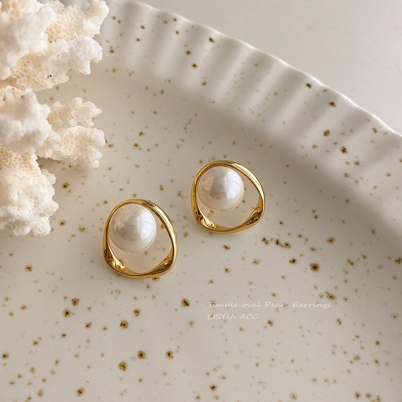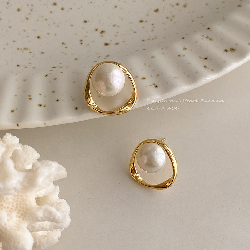 irregular oval pearl stud earrings