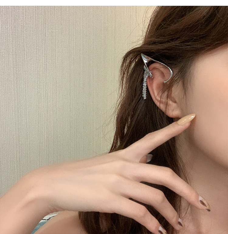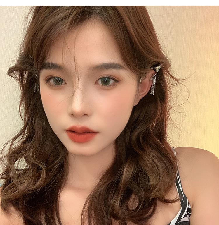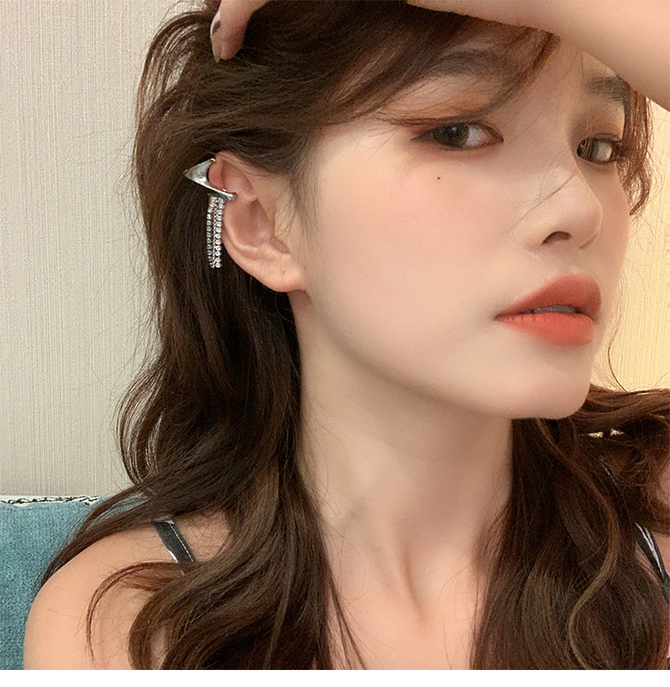 flash diamond tassel ear clip without pierced female ear bone clip korean fashion trendy sweet cool earrings online celebrity temperament earrings
