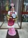 2Facial: Hand-painted, hair and headdress: Artificial silk wig material; hand-wrapped hairstyle; hand-woven hair accessories with silver and gold threads; hand-strung beads, etc.