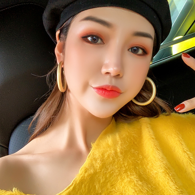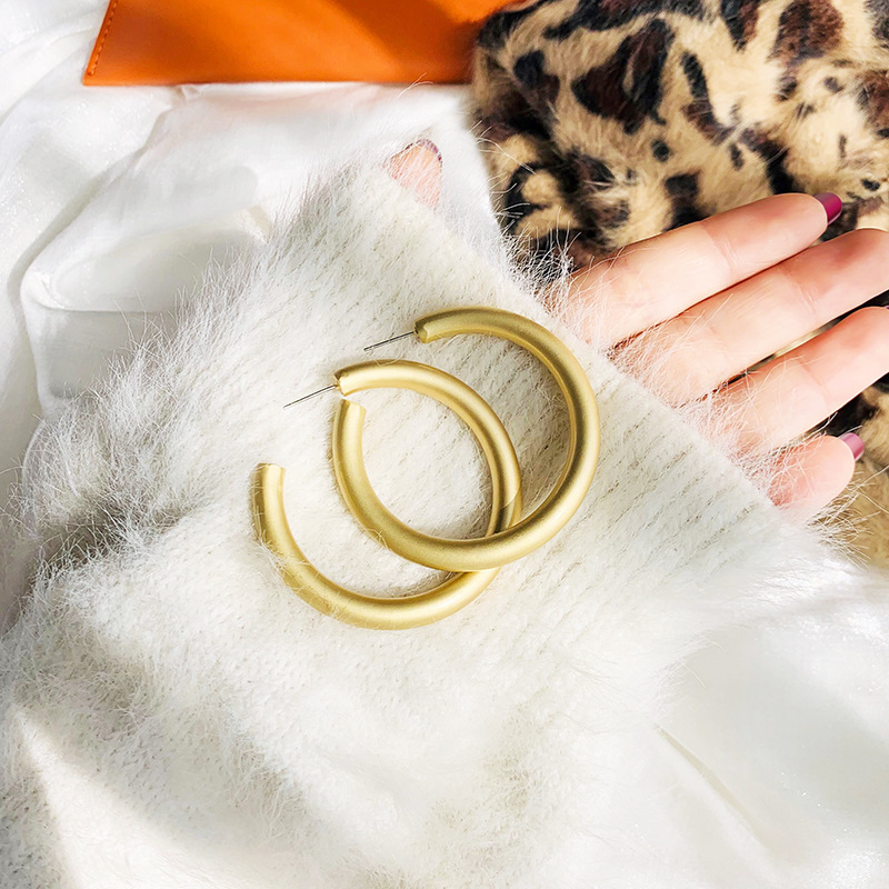silver needle. 5cm matte gold open earrings