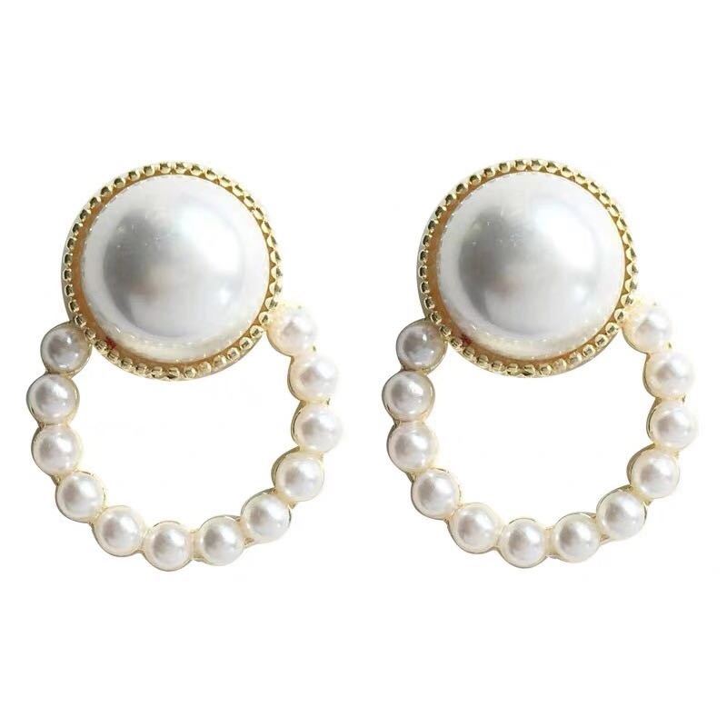 silver needle. semicircle pearl ear studs