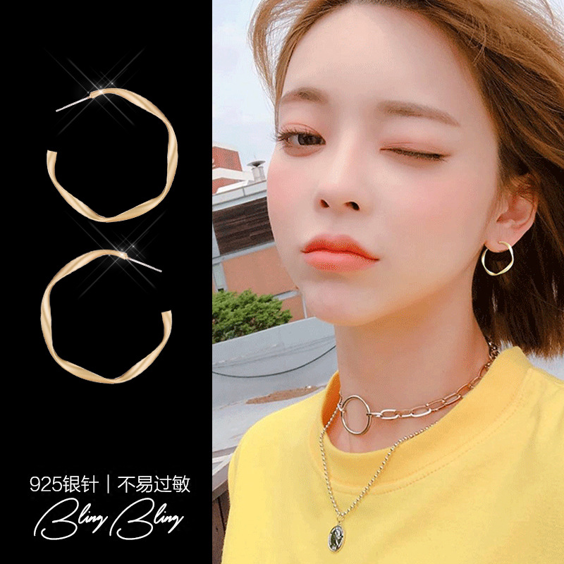 silver needle. c- type matte ear studs
