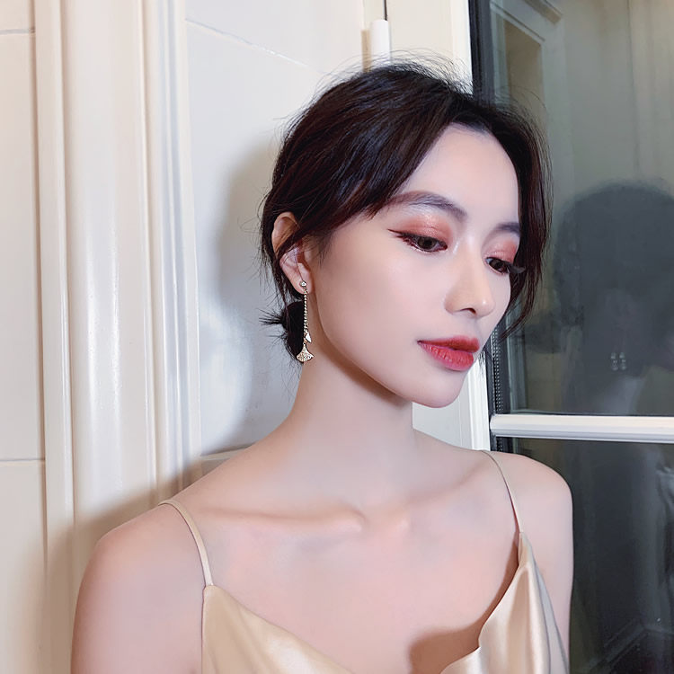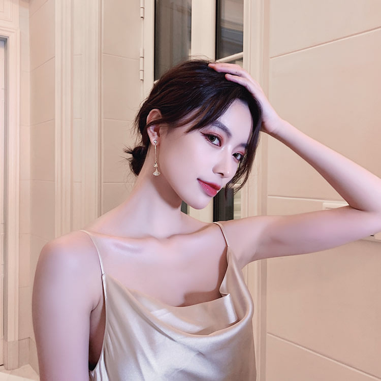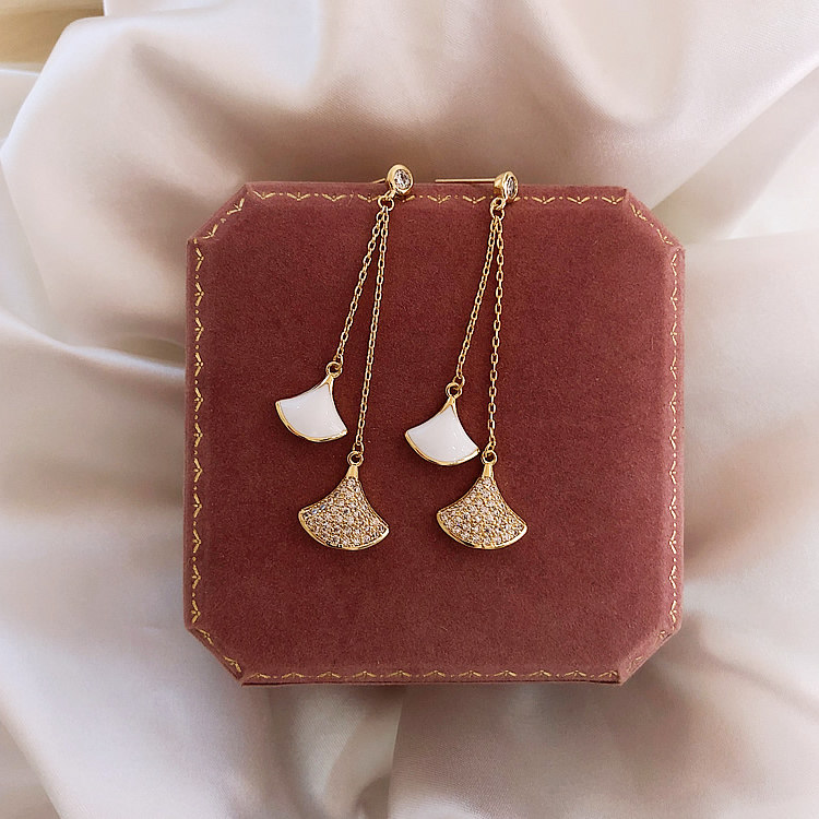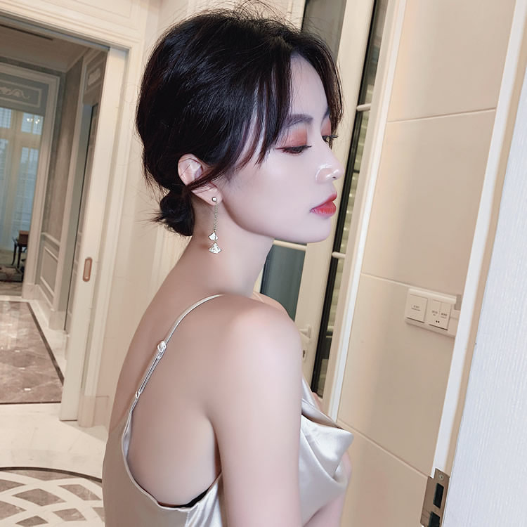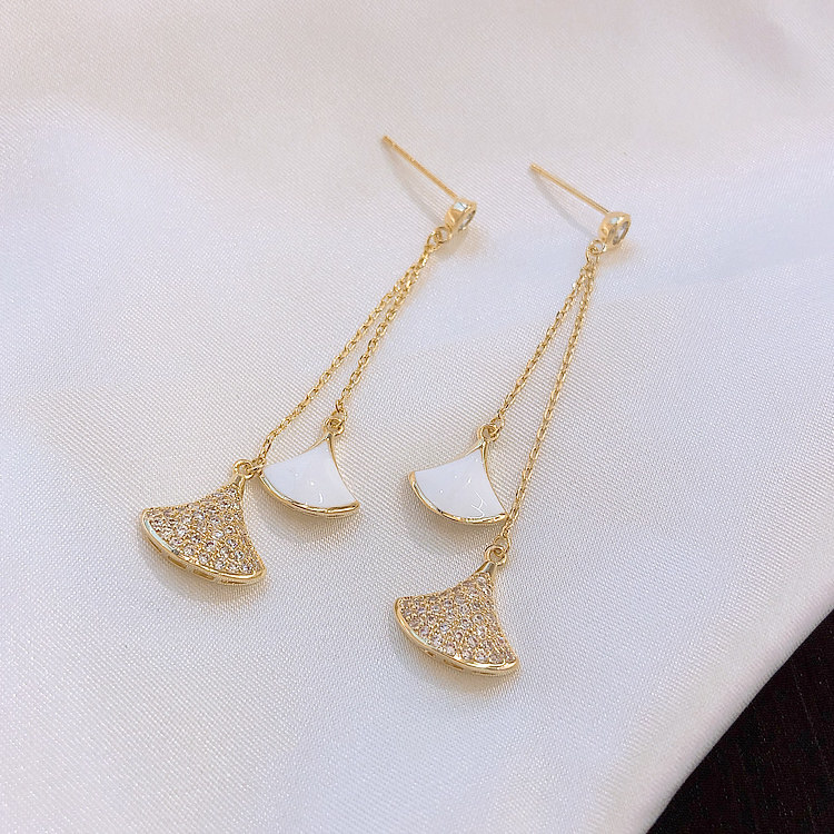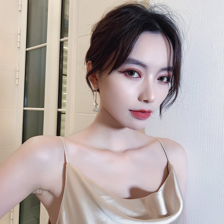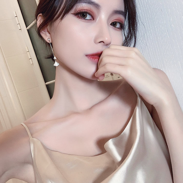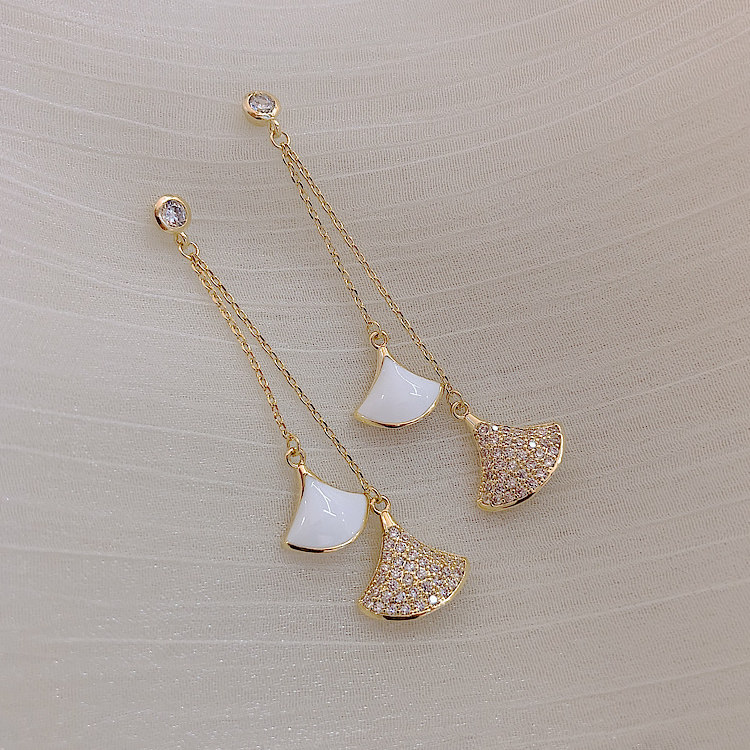 silver needle. scallop earrings white