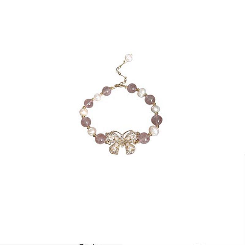 micro inlaid pearls butterfly strawberry crystal bracelet
