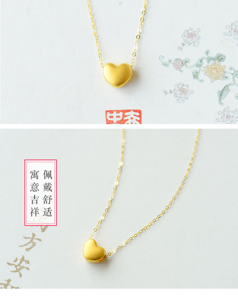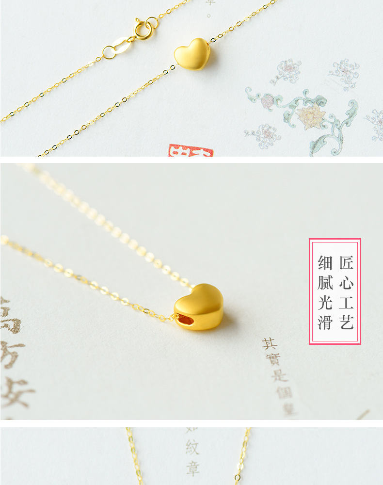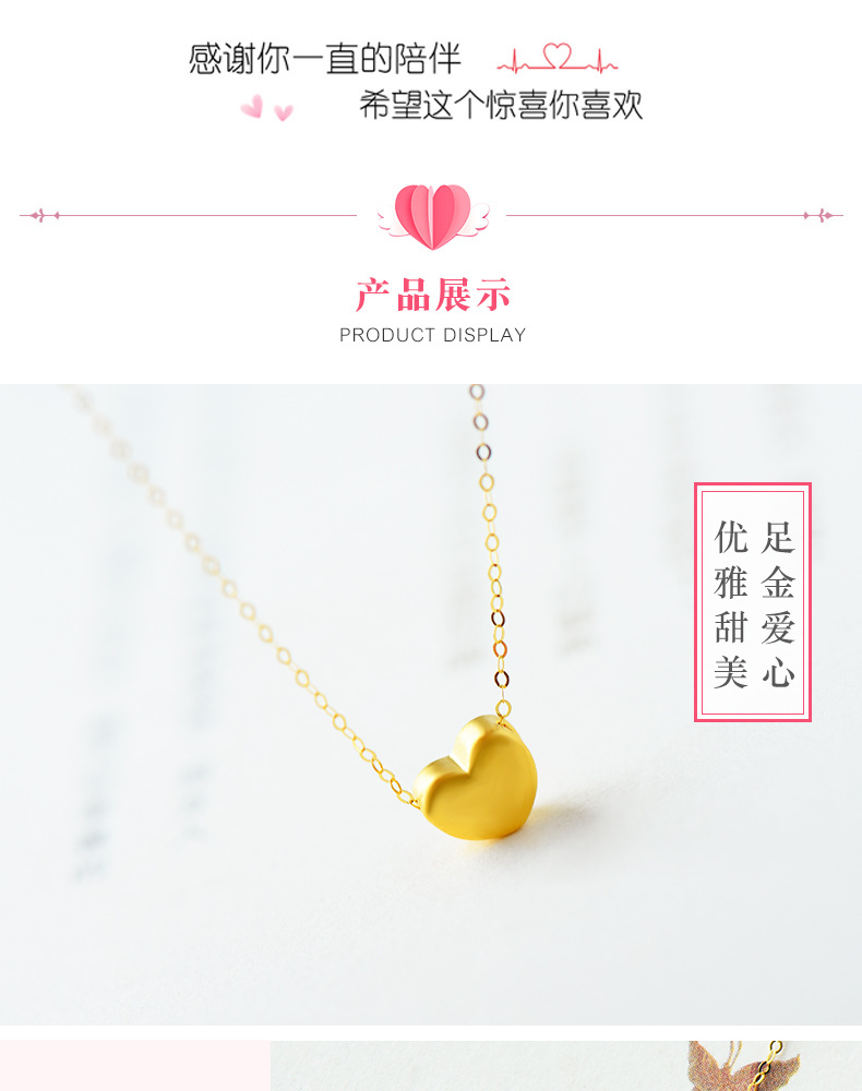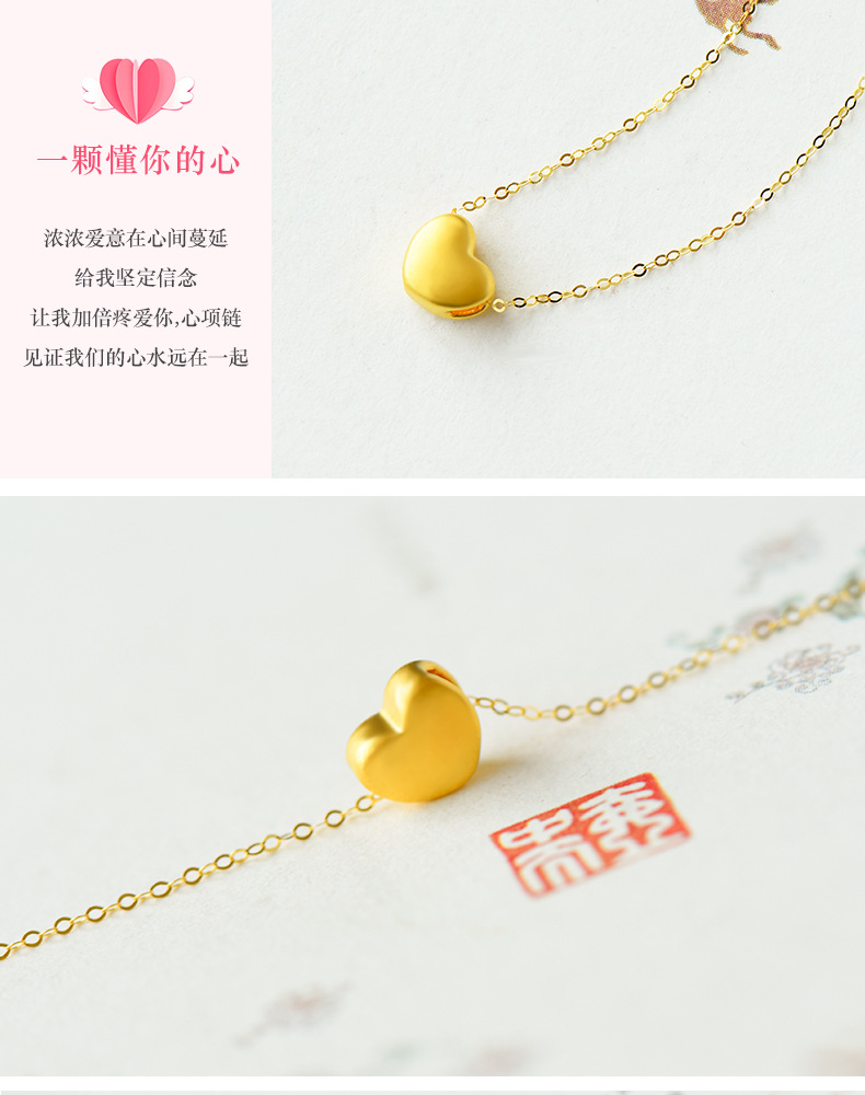 Pure Gold 999 Hard Pure Gold Small Love Necklace Pendant Female Gold Clavicle Chain Korean Fashion DIY Accessories in Stock Wholesale