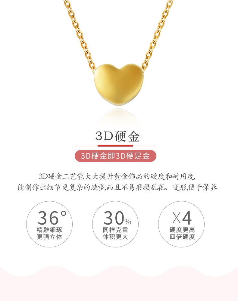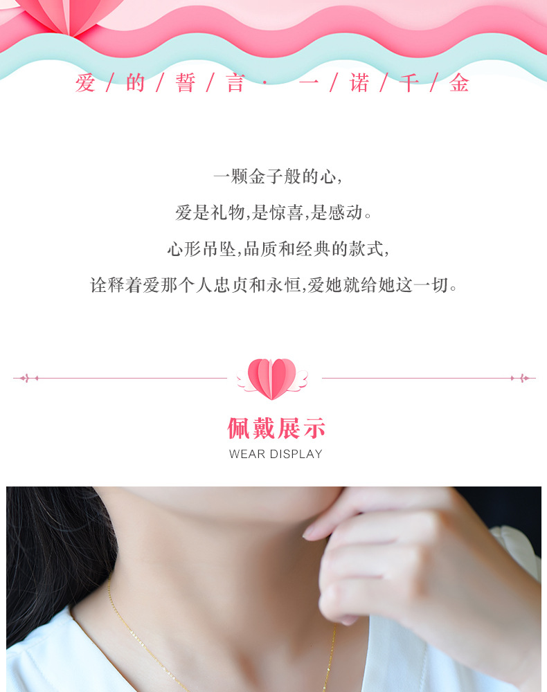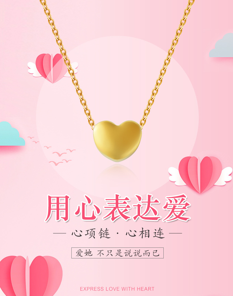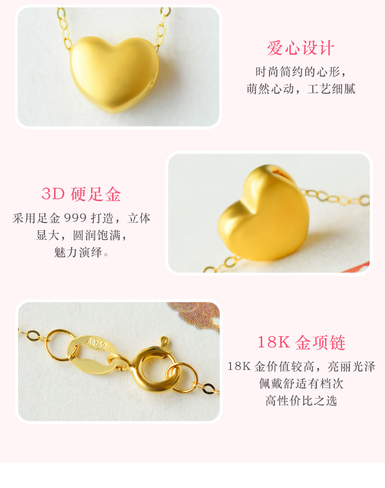 Pure Gold 999 Hard Pure Gold Small Love Necklace Pendant Female Gold Clavicle Chain Korean Fashion DIY Accessories in Stock Wholesale