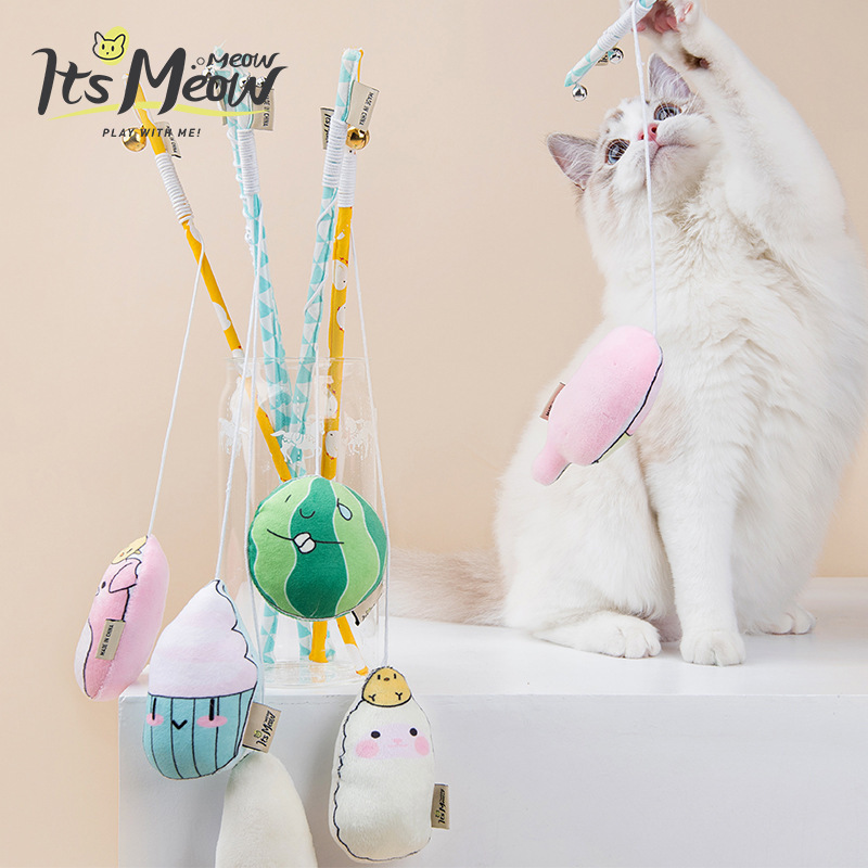 Cat Teaser Cat Toys with Catnip Belt Bell Cat Self-Hi Toys Long Brush Holder Bite-Resistant Catnip Toys