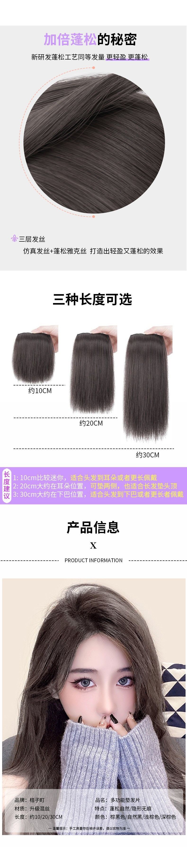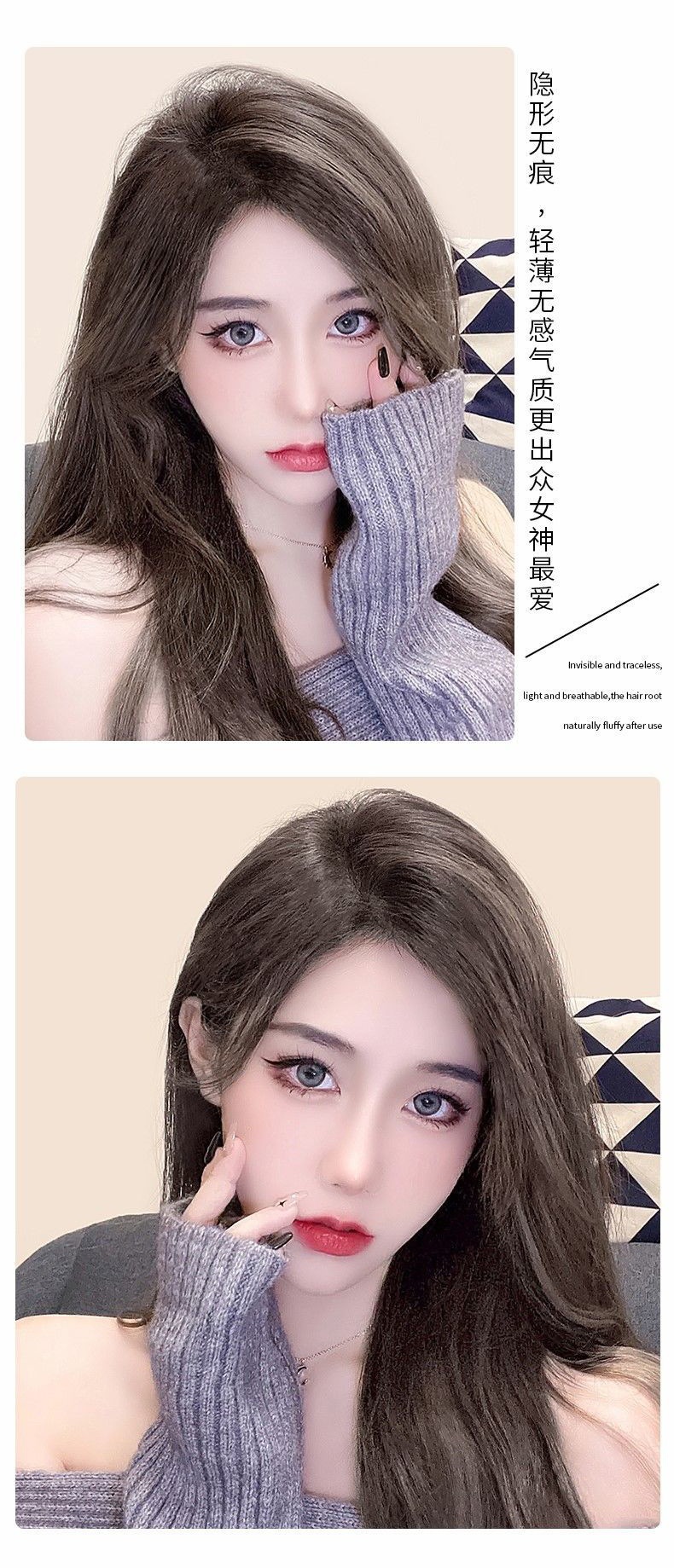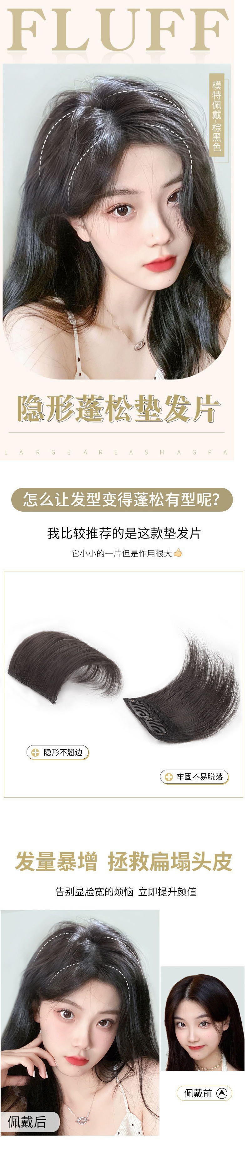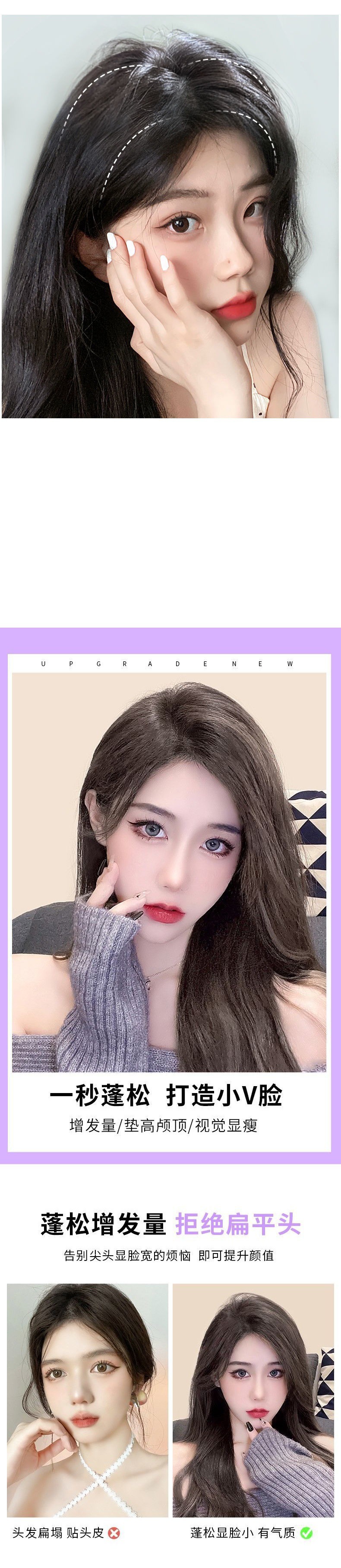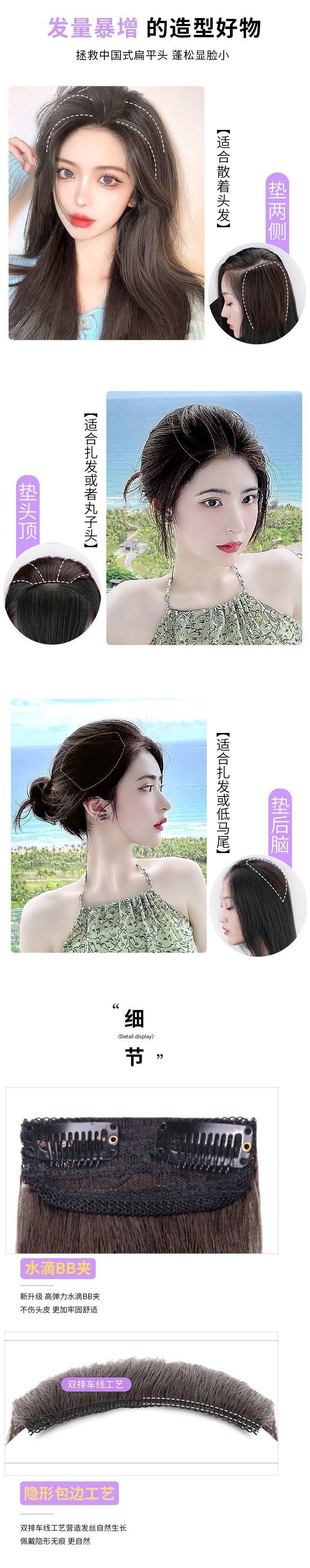 Hair Pack Wig Set Hair Root Hair Growth Volume Fluffy Implement Real Hair Seamless Hair Head Hair Replacement Female Invisible High Skull Top