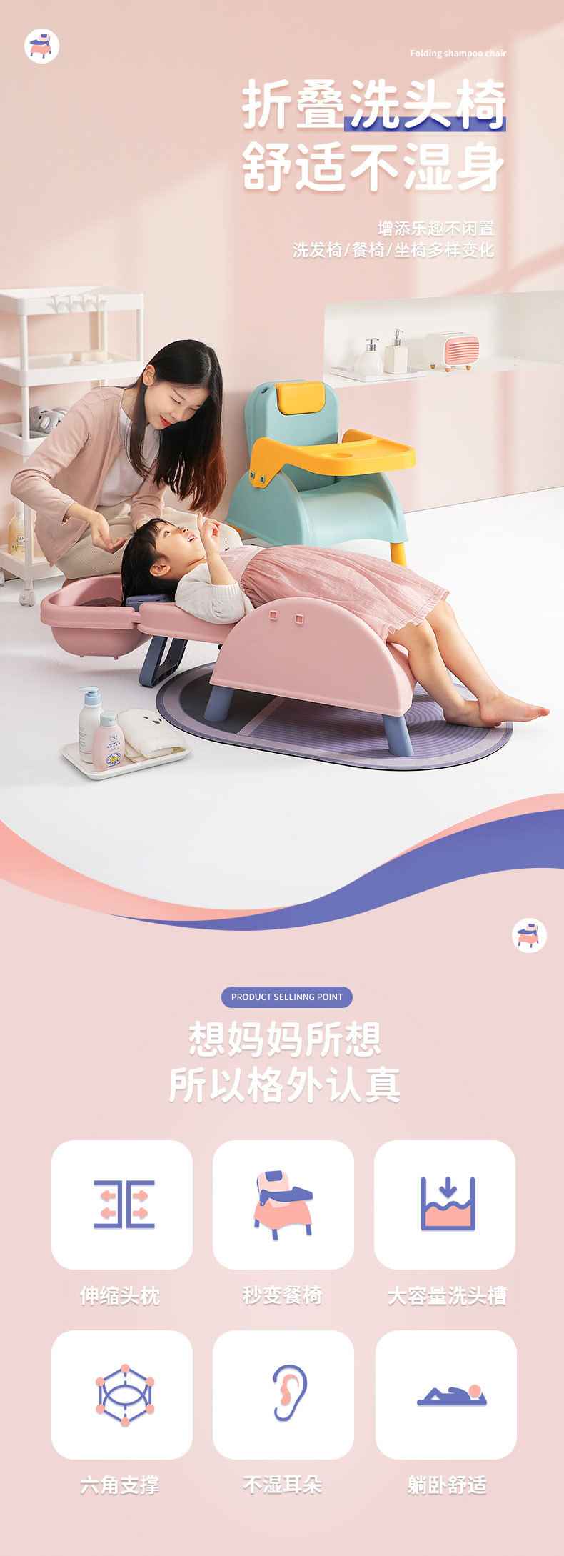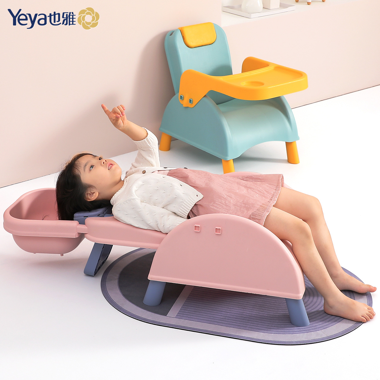 [folding three uses] chair + basin + table-cloth blue + anne pink